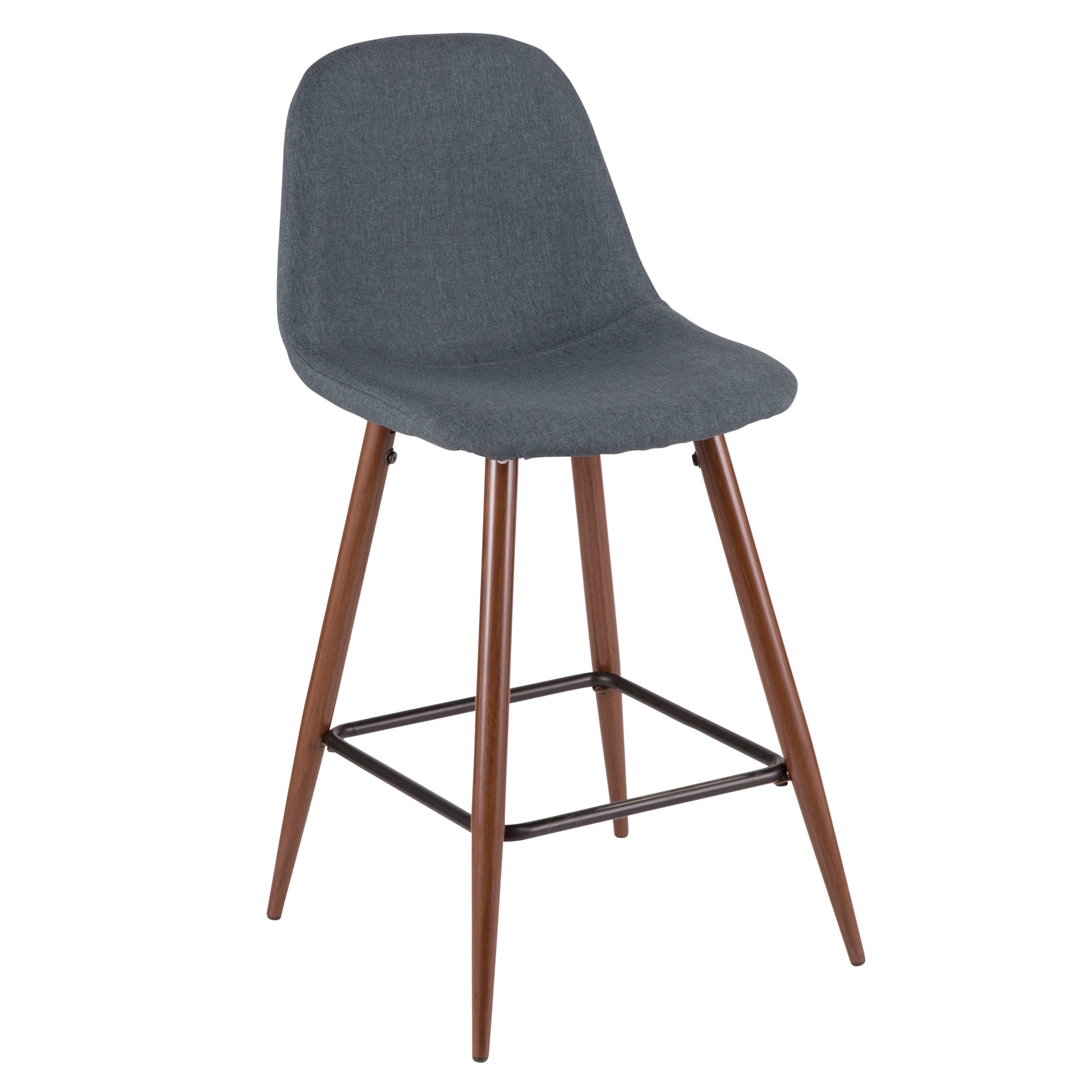 Pebble Mid-Century Modern Counter Stool in Walnut and Blue by LumiSource - Set of 2