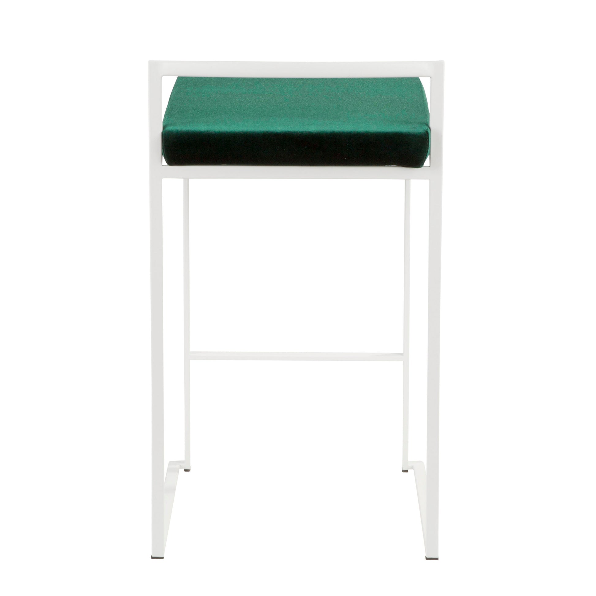 Fuji Contemporary Stackable Counter Stool in White with Green Velvet Cushion by LumiSource - Set of 2