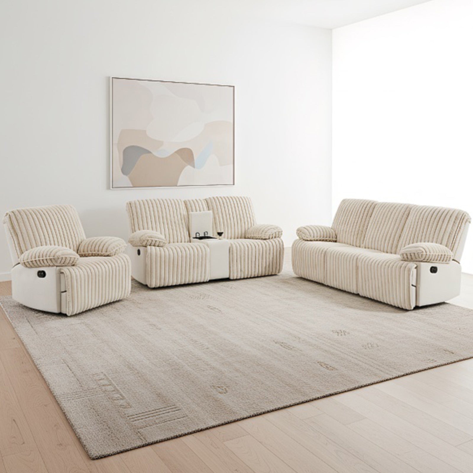 Manual Reclining Sofa 1+2+3 Seat, Recliner Sofa with Hidden Cup Holders, Wall Hugger Recliner Couch for Living Room Home Theater, Beige