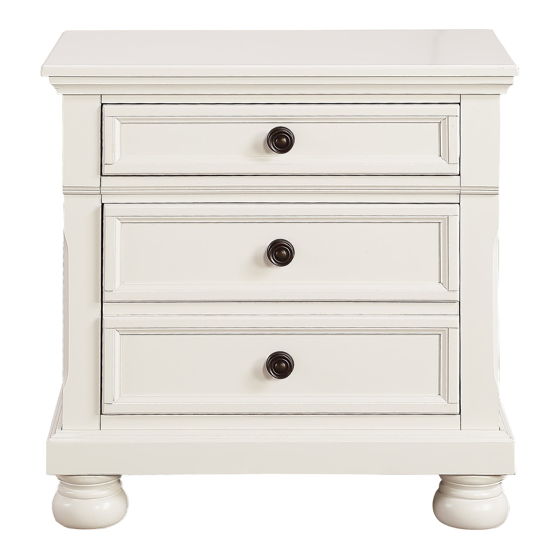 The nightstand's White finish can transition from traditional to country casual, with antiqued bronze knob hardware punctuating the look of each framed drawer front and bun feet providing support. The hidden drawer of the nightstand provides discrete storage space for your valuables.