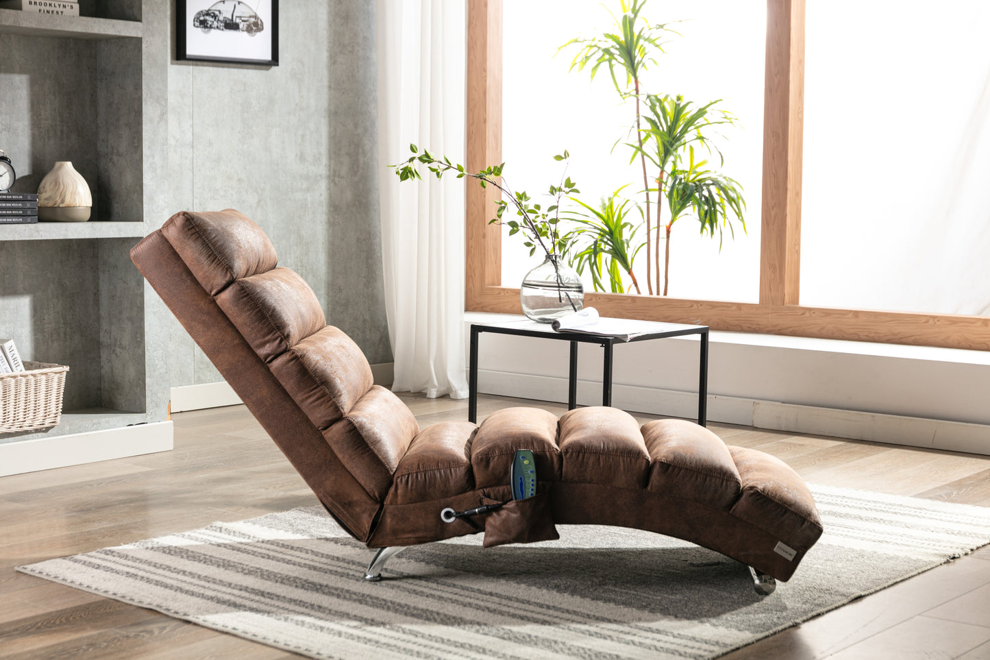COOLMORE Linen Massage Chaise Lounge Indoor with Remote Control,Ergonomic Electric Massage Long Lounger with 5 Modes for Office, Living Room,Bedroom (Coffee)