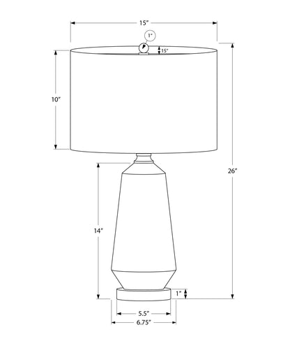 - This 26"h contemporary table lamp with a green ceramic base and drum shaped ivory linen drum shade, finished with a gold finial on top, provides the perfect decorative accent lighting in a living room, home office, or bedroom, to end or side tables