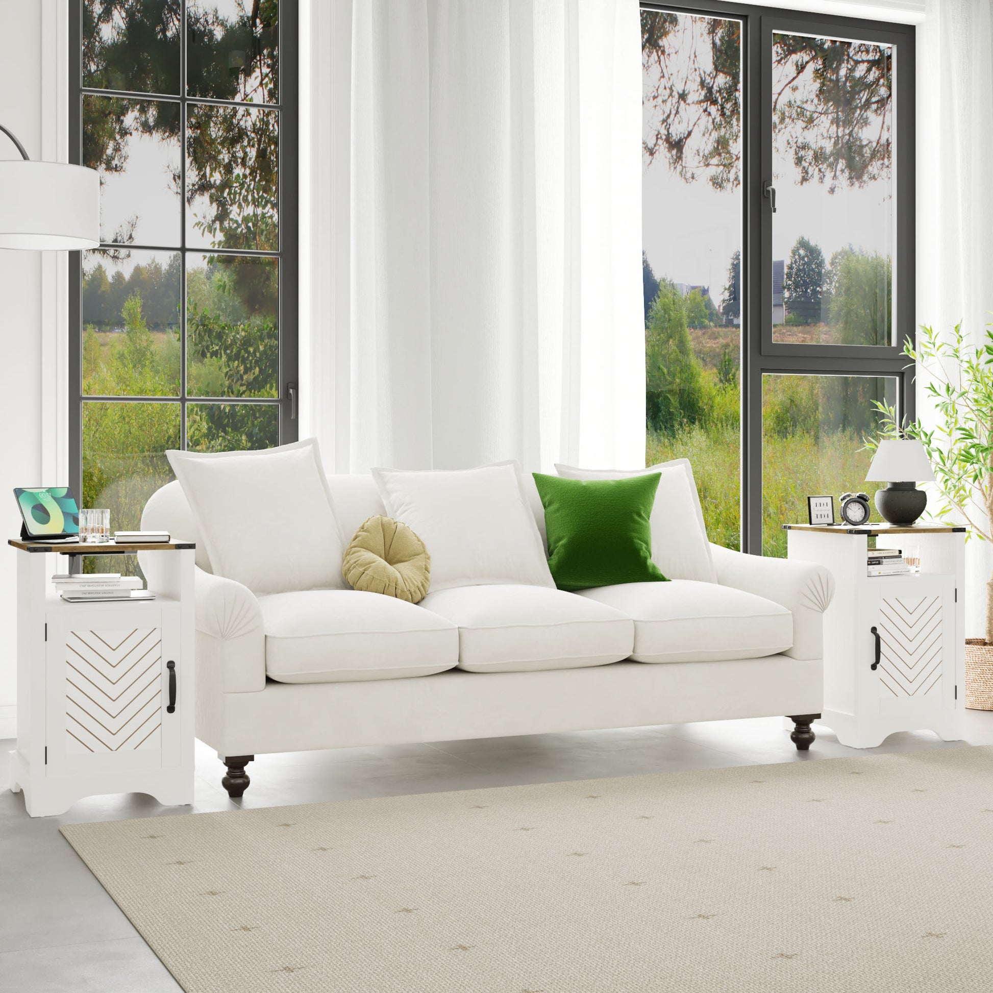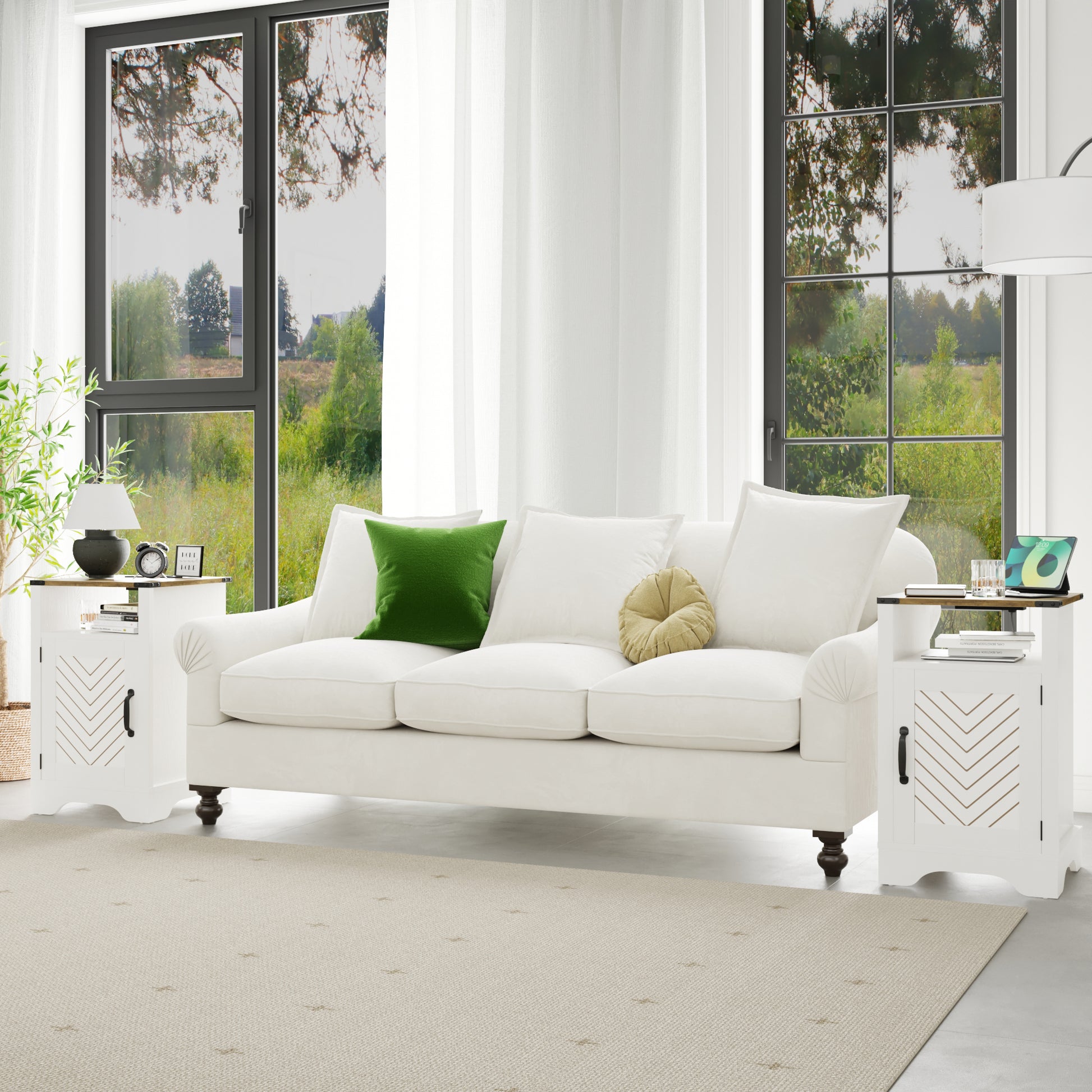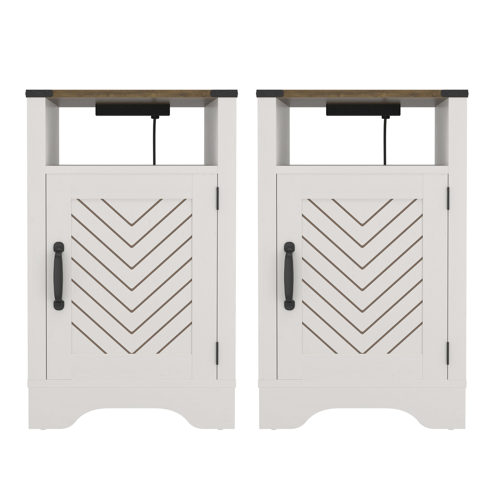 Farmhouse Nightstand Side Table, Wooden Rustic End Table, Tall Bedside Table with Electrical Outlets Charging Station (2 Sets) - White & Oak