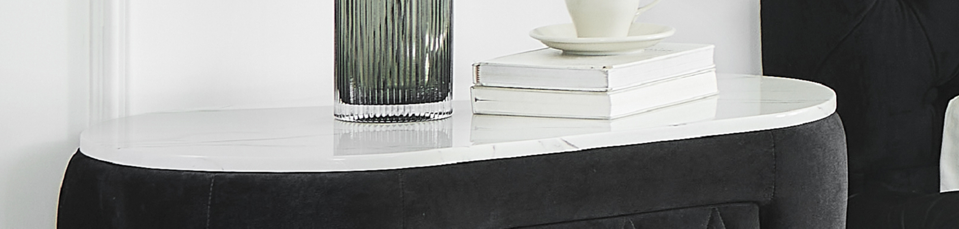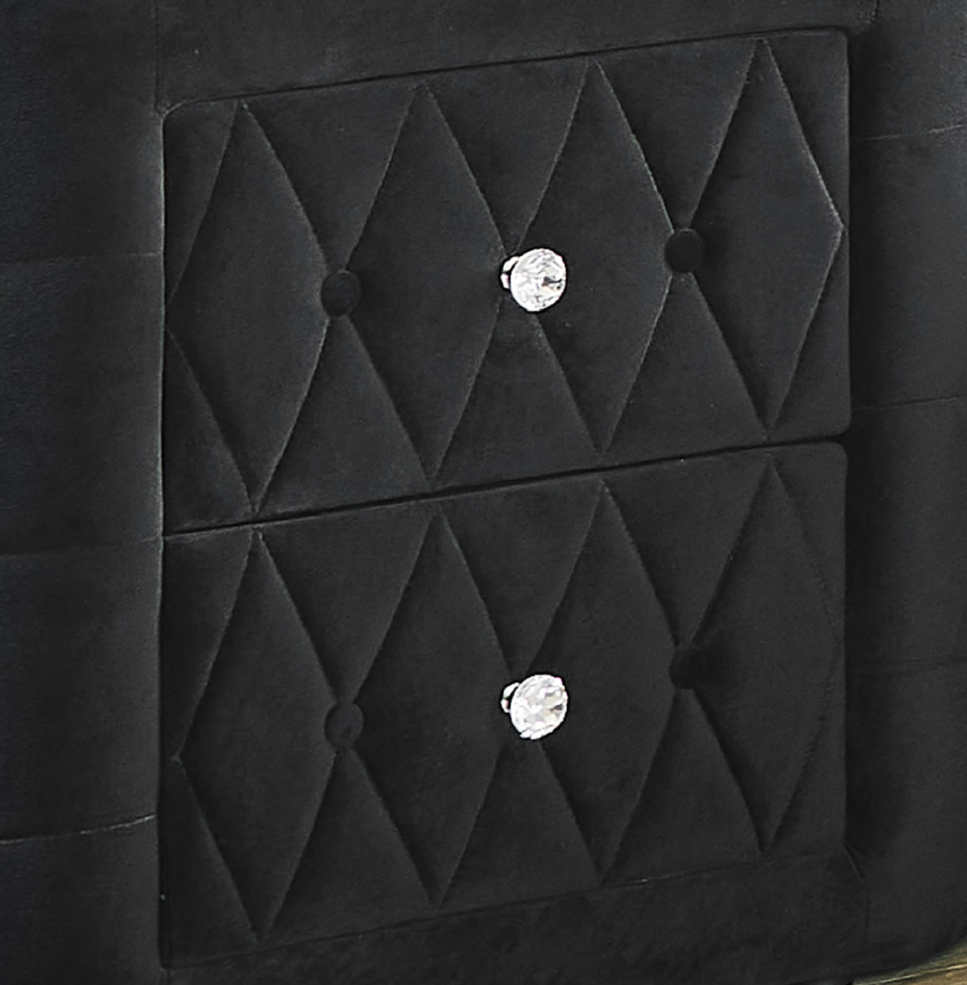 1pc Oval Faux Marble Top Nightstand 2- Drawers Storage Black Finish Button Tufted Faux Crystal Tufted