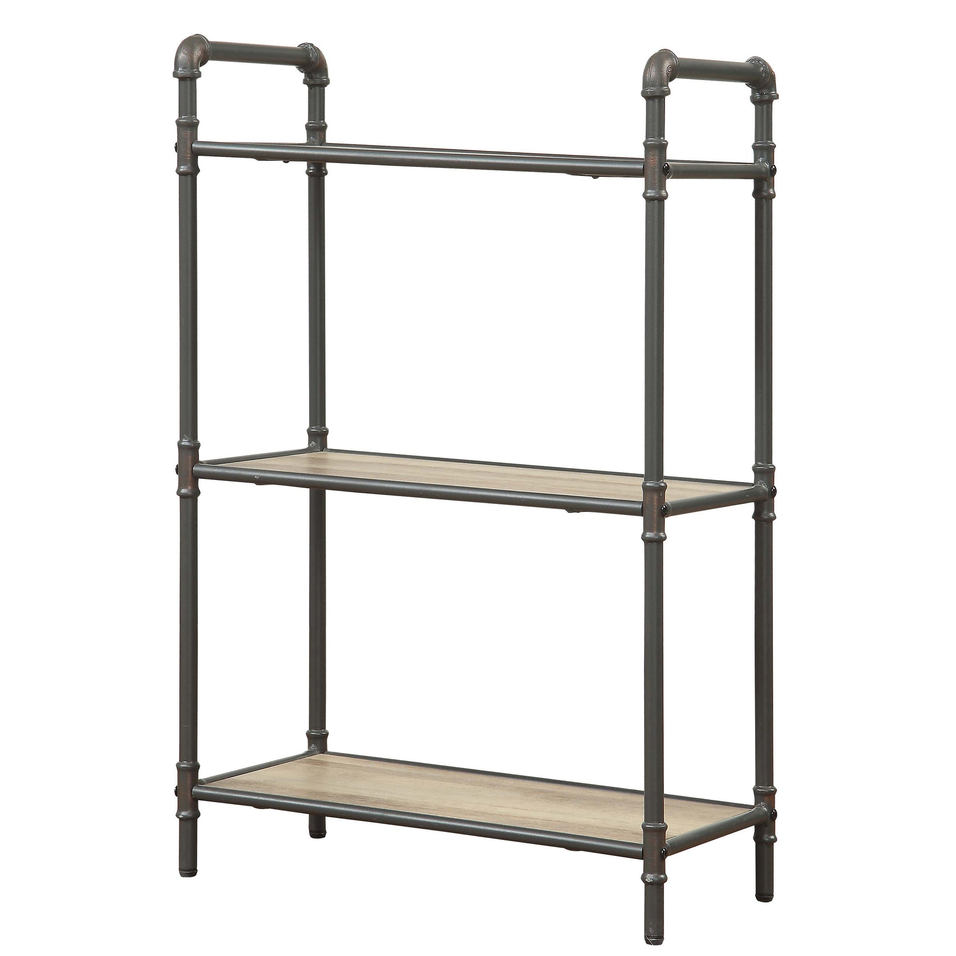 - Industrial-style bookshelf featuring an antique oak and sandy grey finish for a vintage look