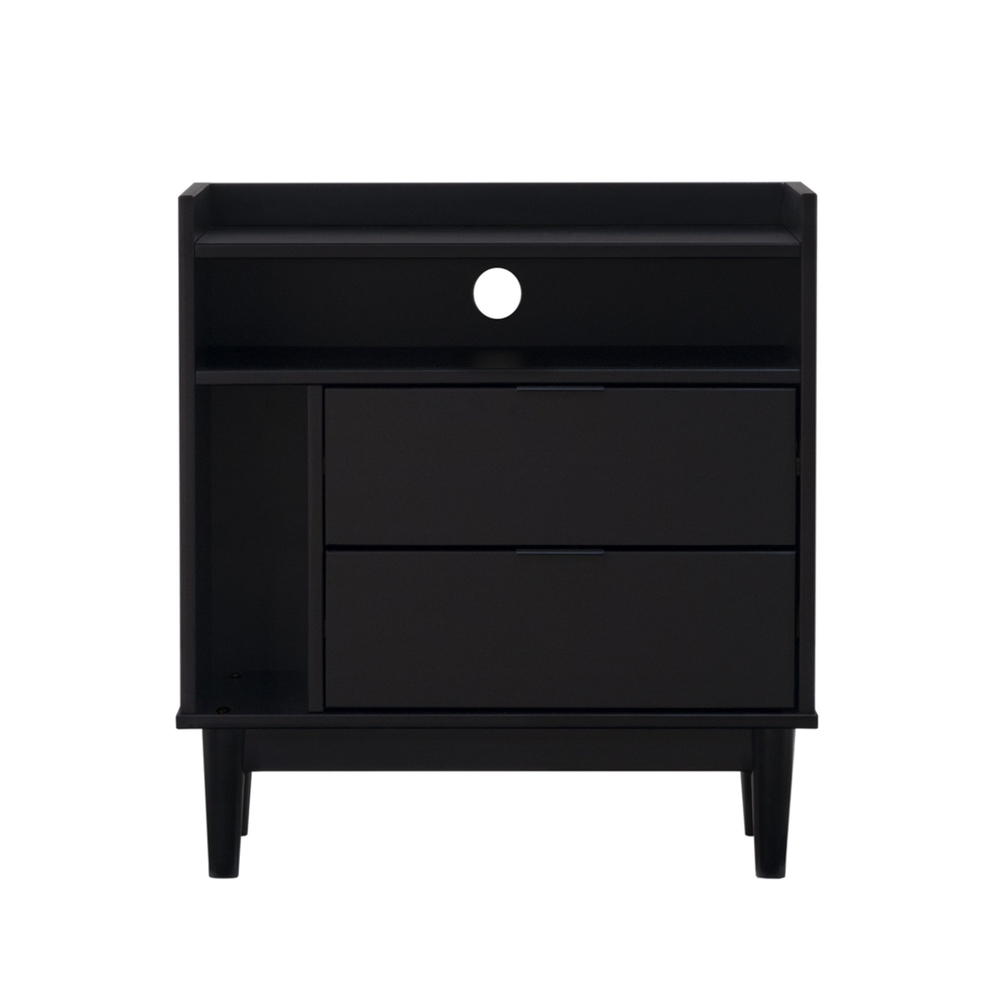 Mid-Century Modern Solid Wood 2-Drawer Gallery Nightstand - Black