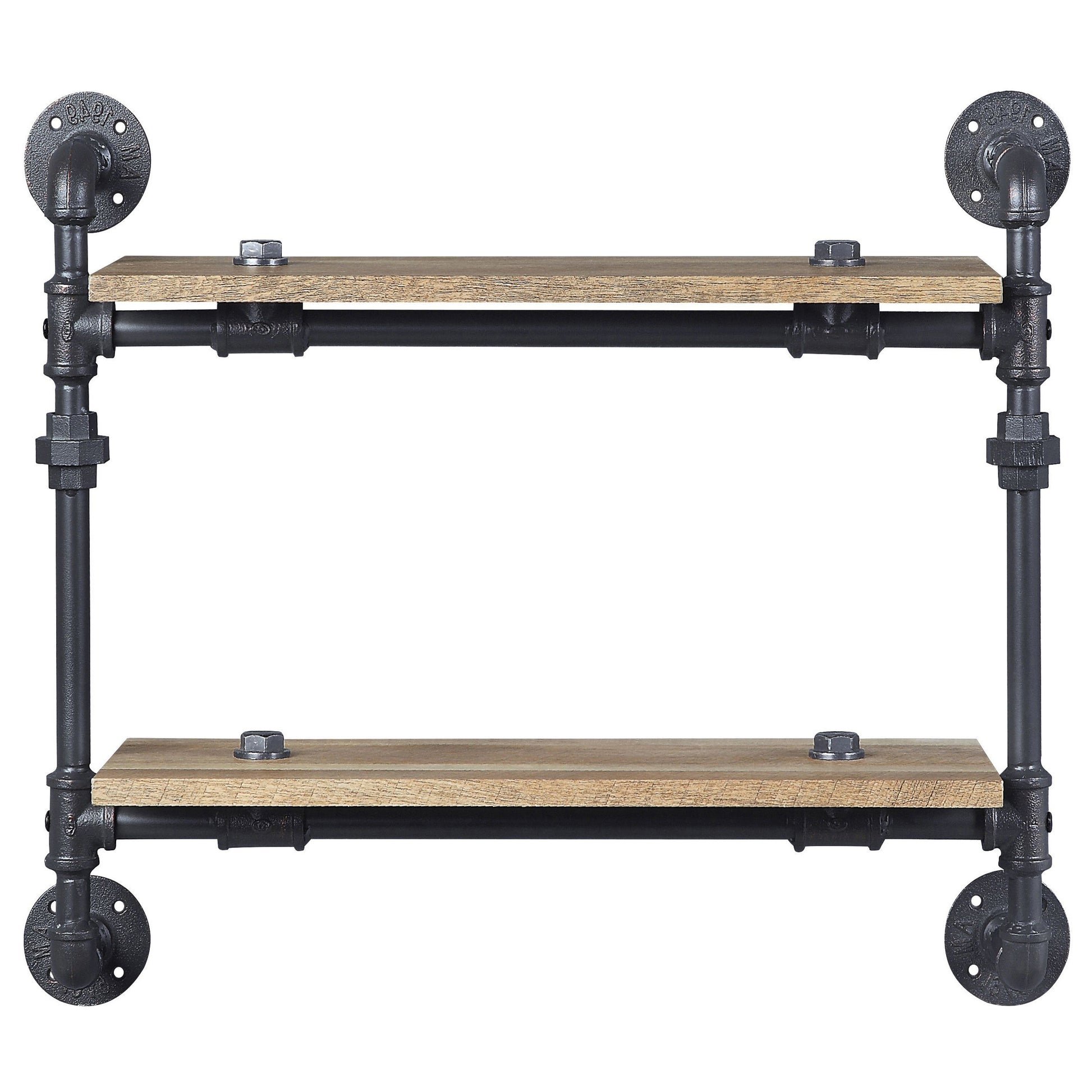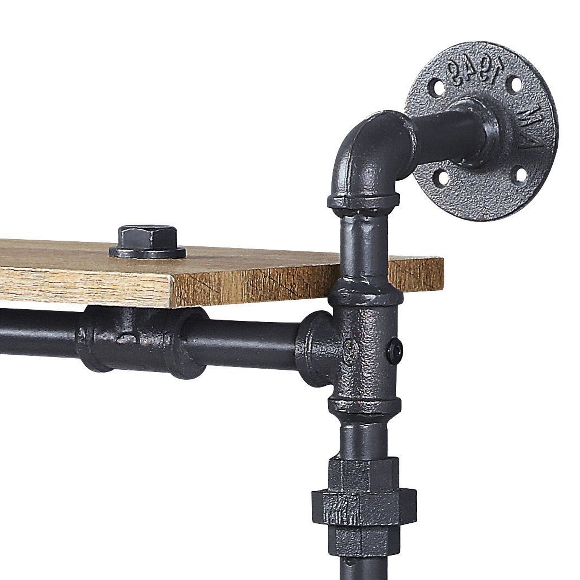- Wall-mounted shelf designed with an industrial look