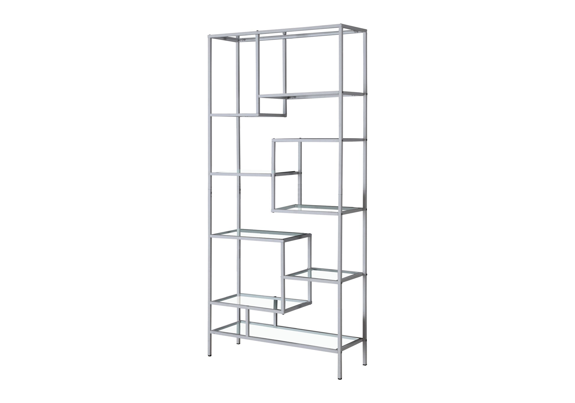 Bookshelf, Bookcase, Etagere, 72"h, Office, Bedroom, Clear Tempered Glass, Grey Metal, Contemporary, Modern