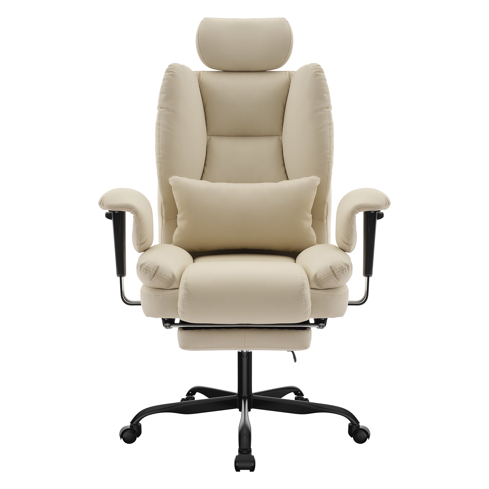Office Chair Ergonomic 200 kg PU Leather Computer Chair with Lumbar Support and High Backrest, Ergonomic Desk Chair with Liftable Headrest, Beige