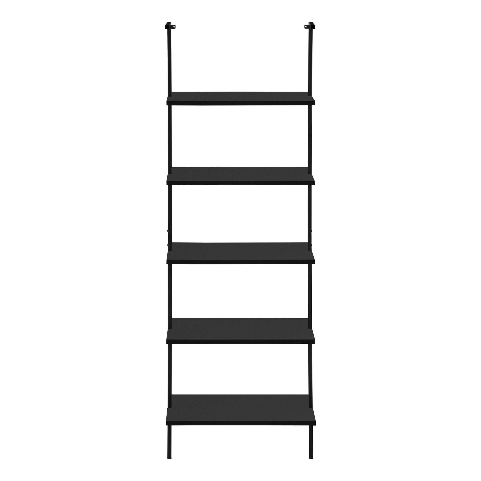 Bookshelf, Bookcase, Etagere, Ladder, 5 Tier, 72"h, Office, Bedroom, Black Laminate, Black Metal, Contemporary, Modern