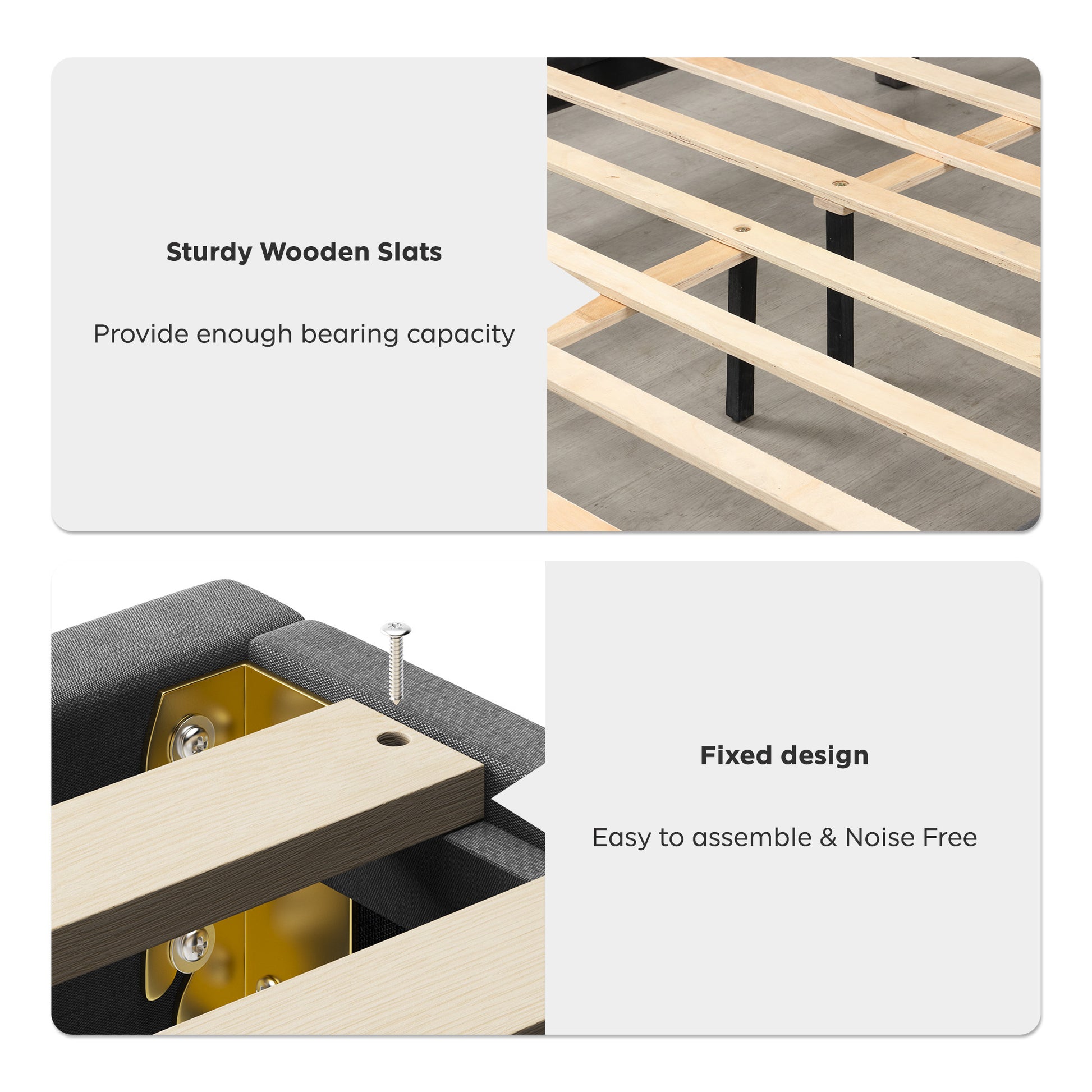 - Sturdy & Noise Free Design: Full bed frame with headboard and storage made of sturdy metal structure, 15 heavy duty metal slats and 11 support legs provide optimal support for all types of mattresses without the use of box springs. we've added a special silent sponge bar to the center beam of this platform bed to eliminate friction between the metal components to ensure your sleep environment, Sleep or be active in this bed without being disturbed by noise.