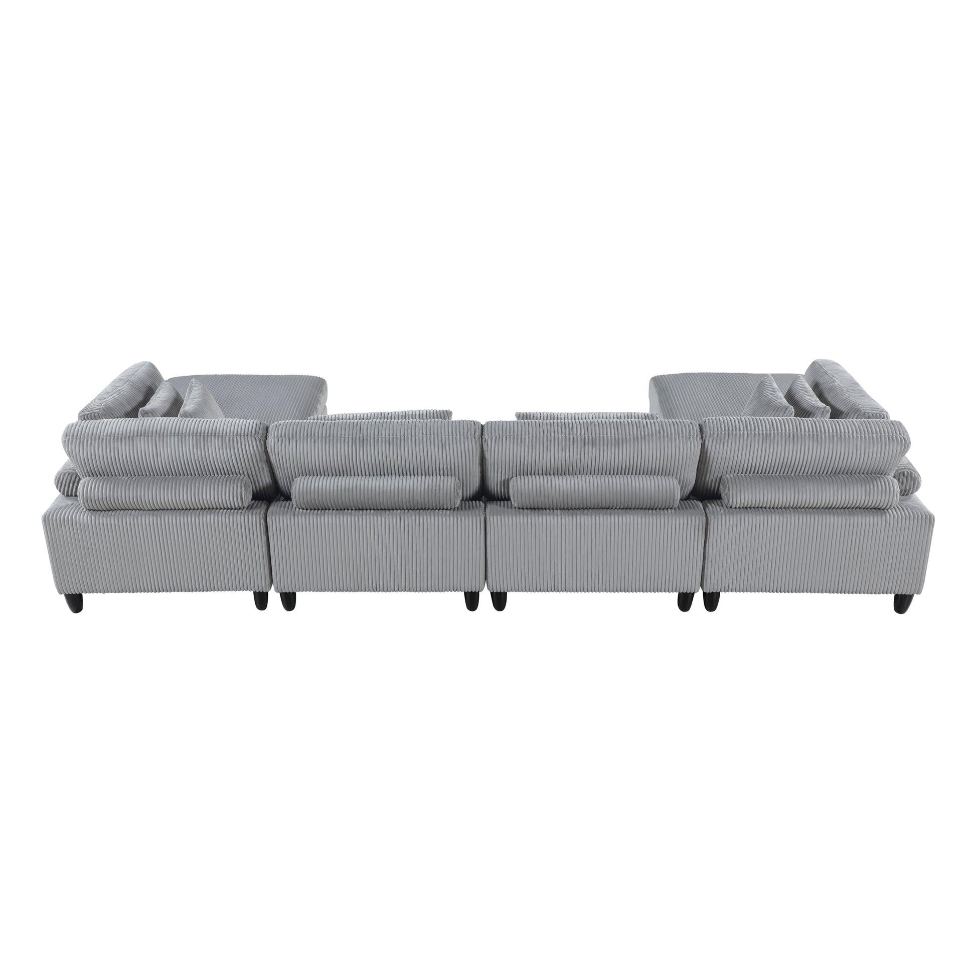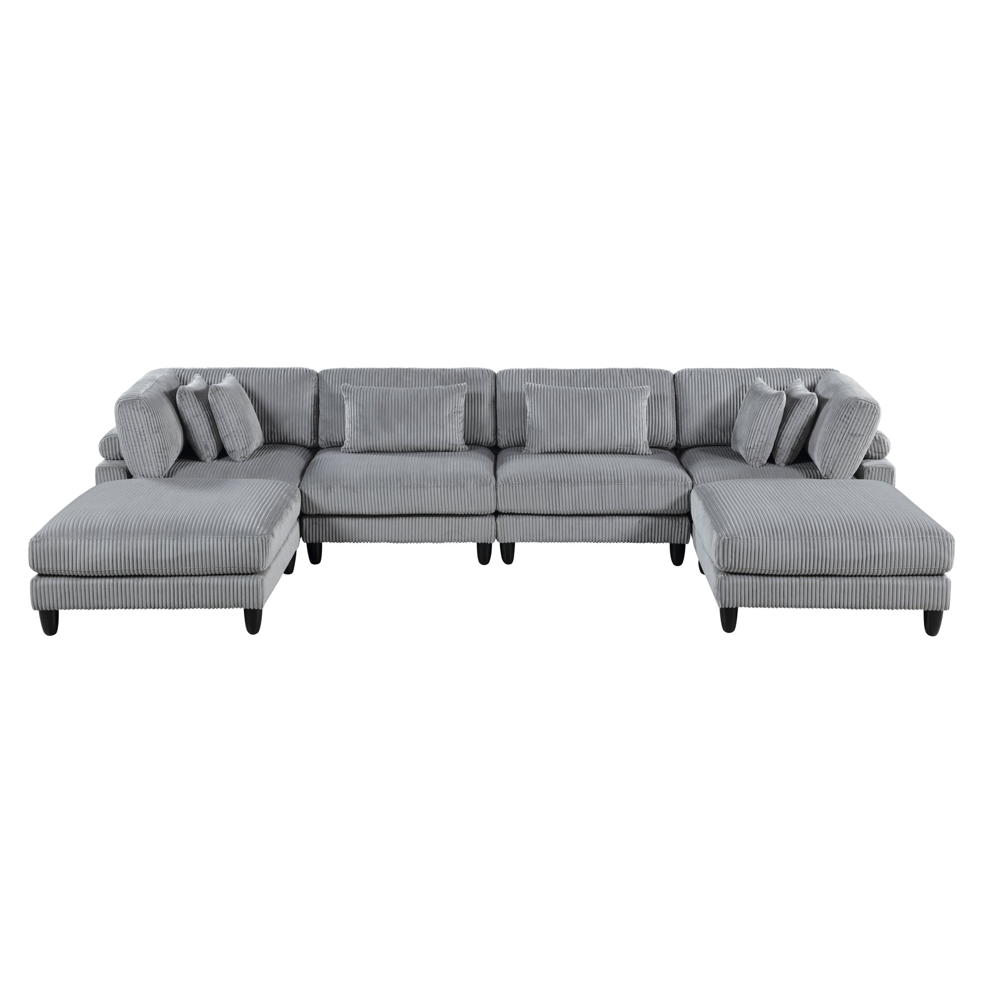 6-PIECE MODULAR SECTIONAL- GRAY CORDUROY FABRIC UPHOLSTERY