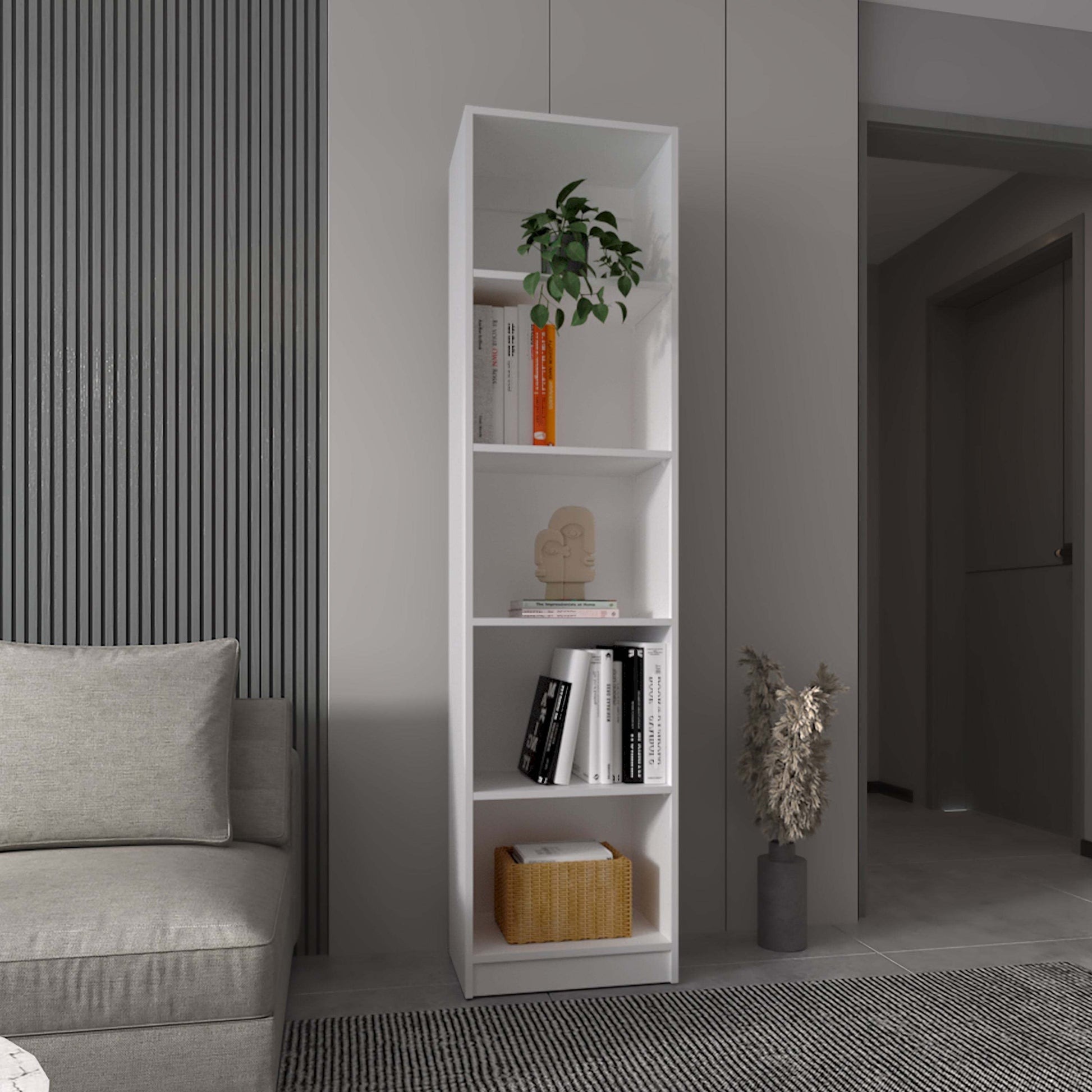 Crafted for the modern home, this bookcase features a slim profile that maximizes space efficiency while offering five shelves for organizing your favorite reads and decor essentials. Its sleek design effortlessly blends style with functionality, perfect for contemporary living spaces.