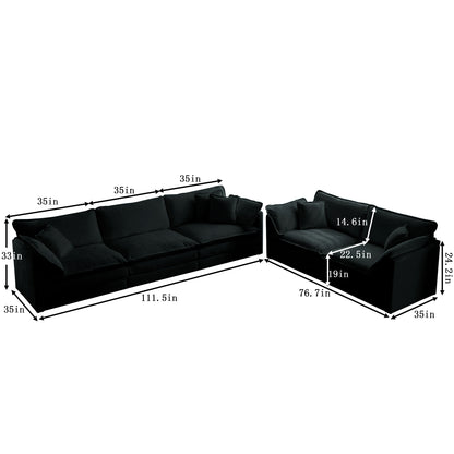 Sofa Set of 2 Chenille Couch, 2+3 Seater Sofa Set Deep Seat Sofa, Modern Sofa Set for Living Room, Black Chenille