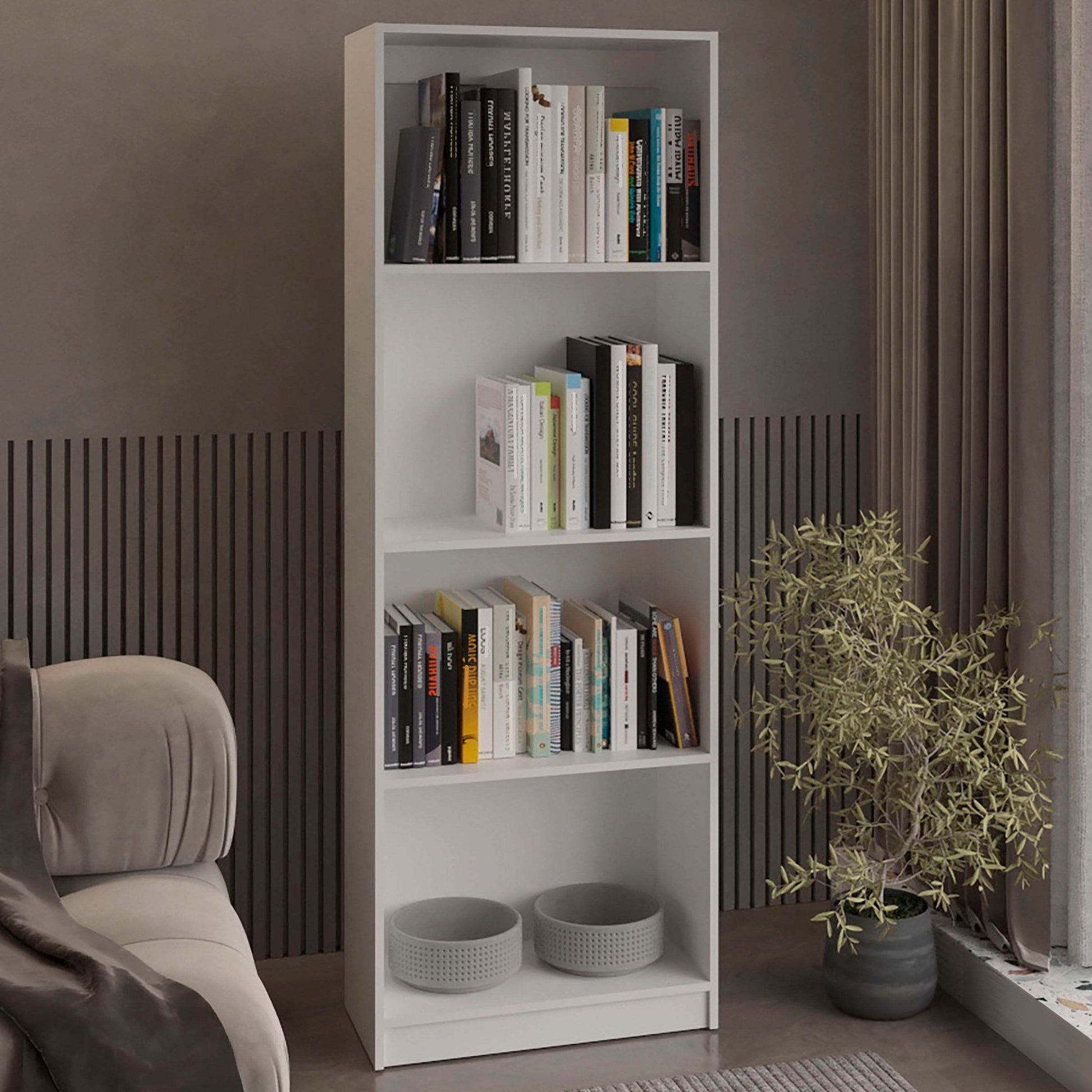 - Experience ample storage with the bookcase's four open shelves, each generously sized at 15.7"H x 18.3"H x 23.5"W