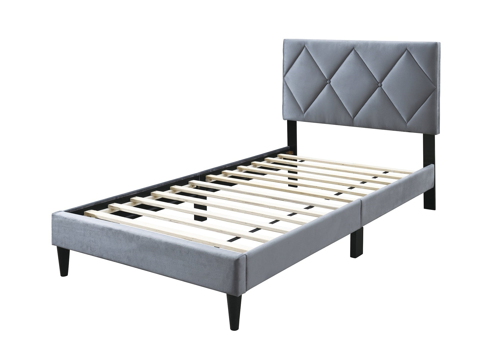 Full Size Bed w Adjustable Headboard 1pc Bedframe, Grey Velvet Upholstered Youth Bedroom Furniture