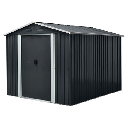 8ft x 10ft Outdoor Metal Storage Shed with meatl foundation,Black