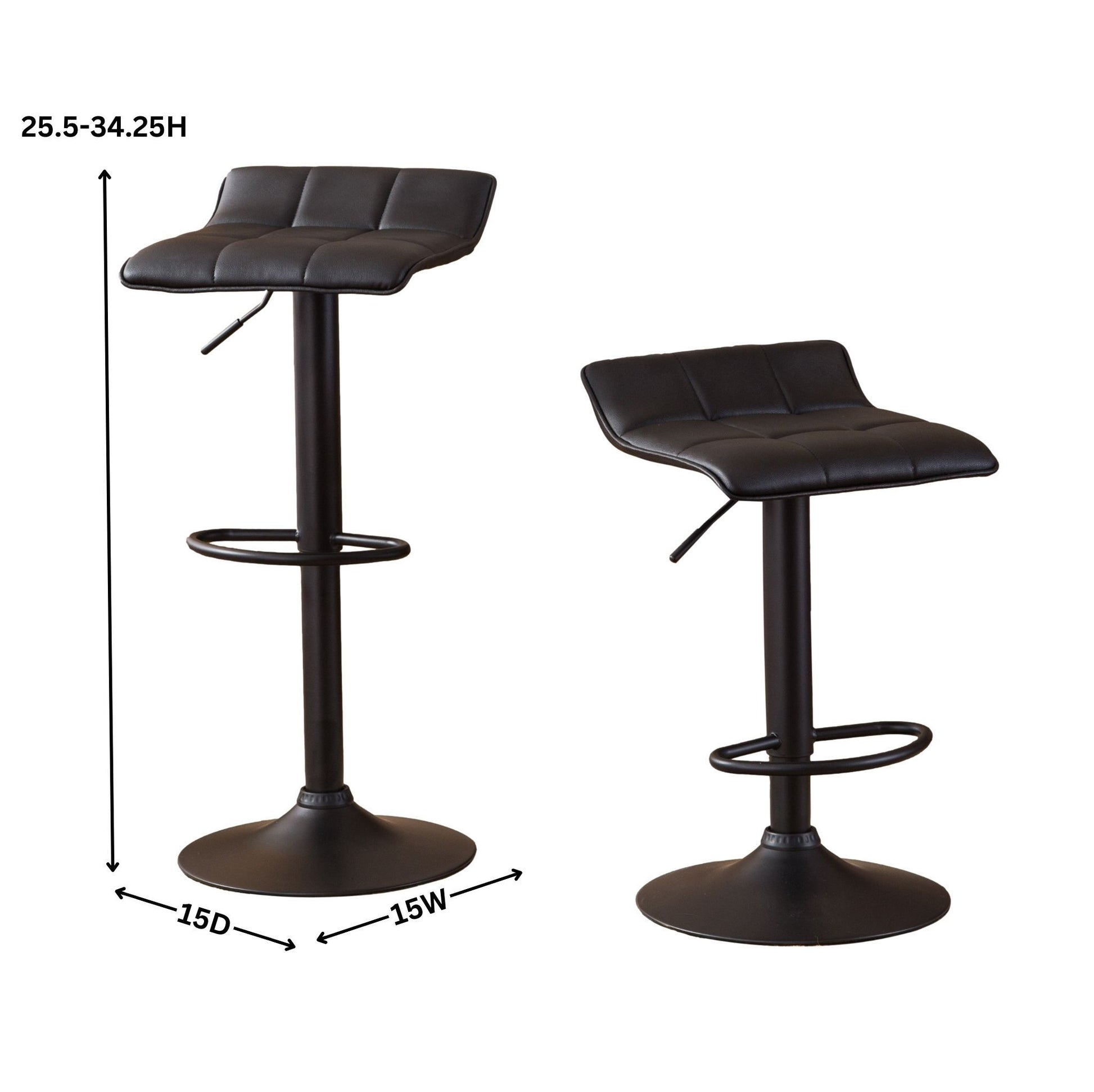 Hot, sleek and incredibly fashionable and fun, these Adjustable Swivel Stools are must-have for the modern home. Set of 2 contemporary stools, PU Leather seat, air lift design for seat height of 25.5 to 34.25 Inch.