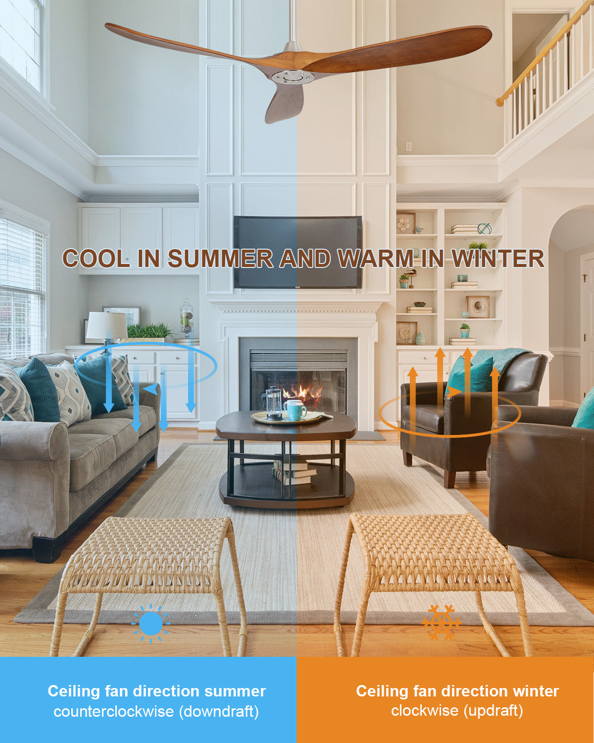 Reversible DC Motor Quiet Energysaving, Function Includes Forward and Reverse for Summer and Winter 2 Airflow Modes, Cooling In Summer and Keeping Warm in Winter
