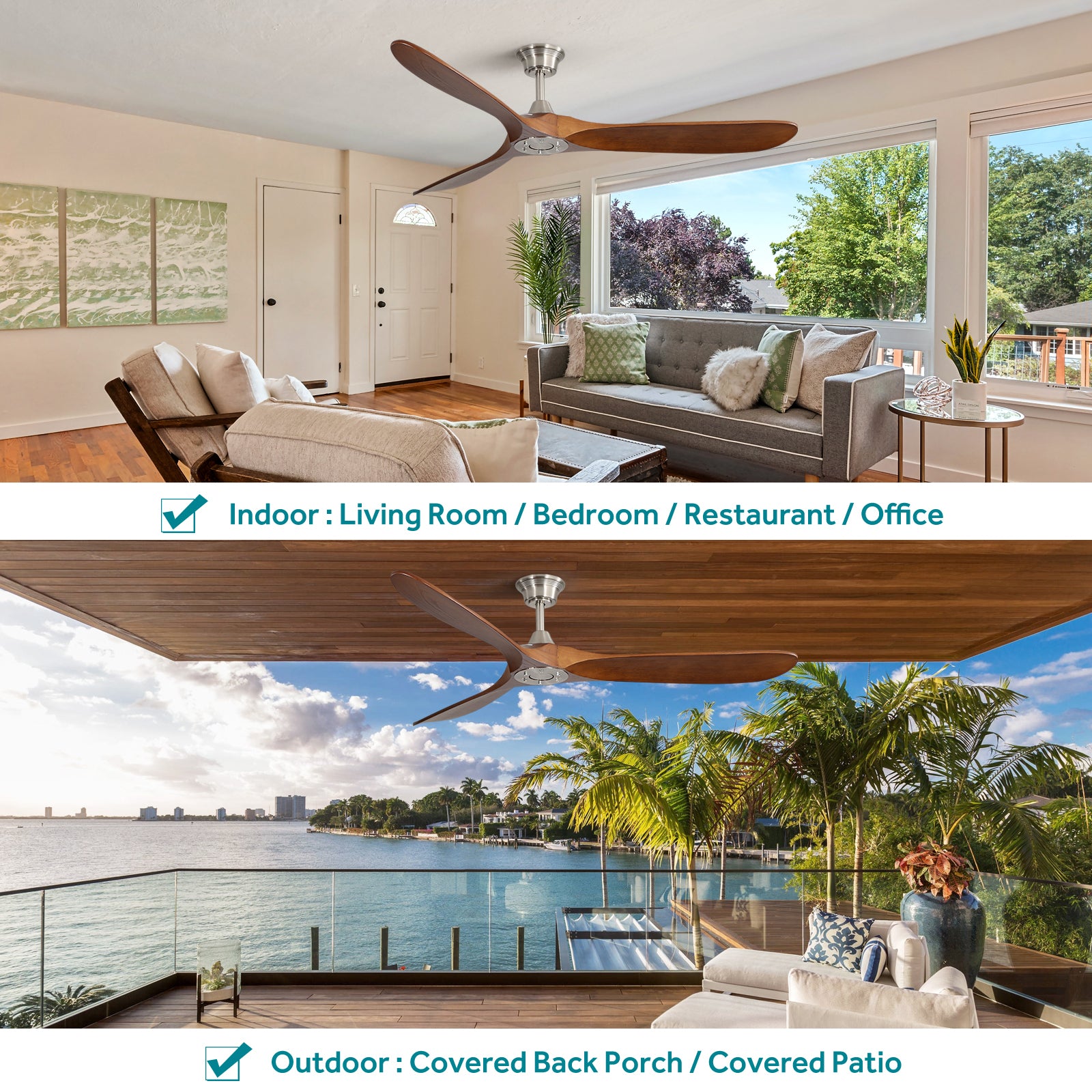 60-inch modern wood ceiling fan is simply and beautifully designed to complement any room decor, perfect for those who want to add a touch of sophistication and elegance to their home or outdoor space, suitable for patio, gazebo, living room, bedroom various places. Also features high-quality solid wood leaves that are both durable and long-lasting.