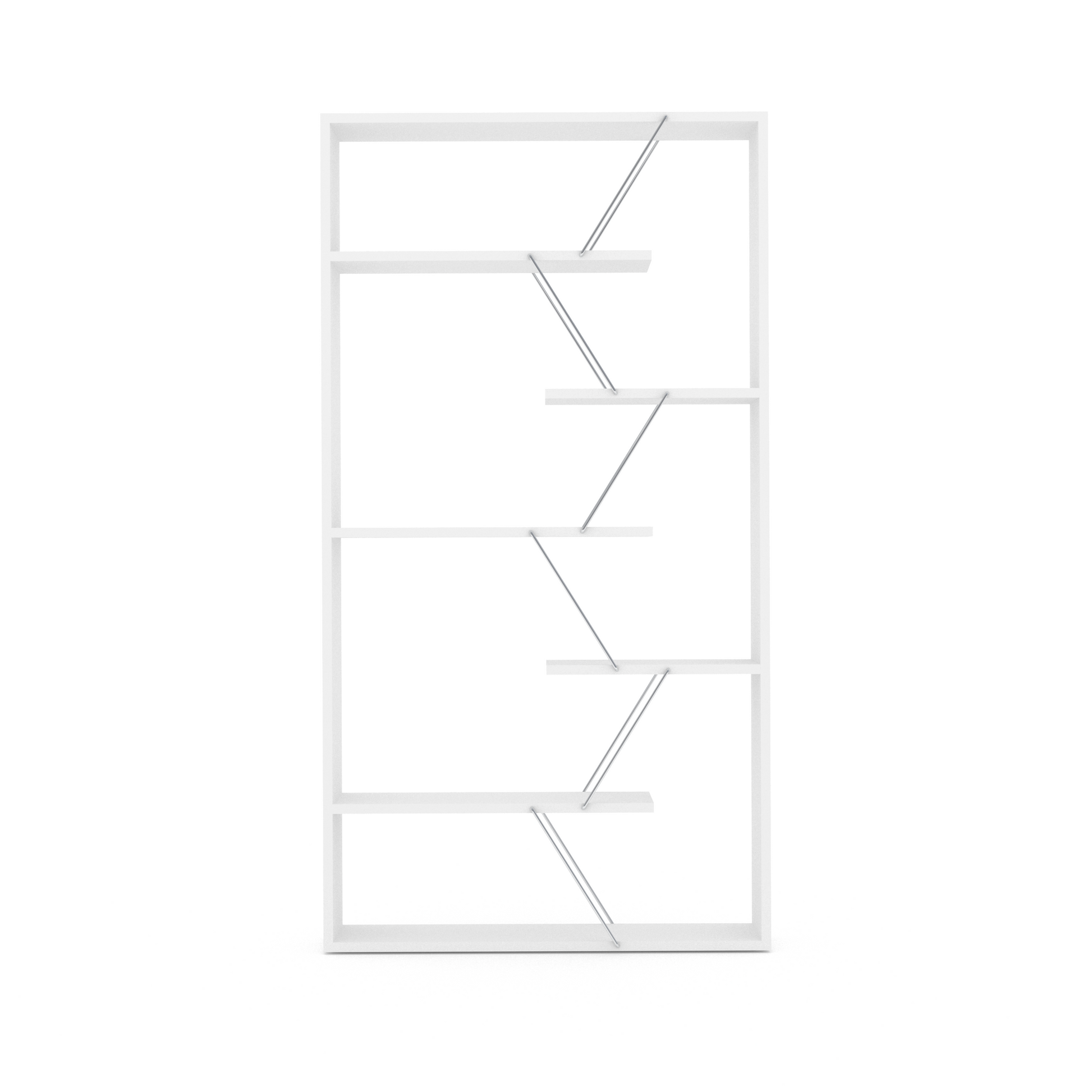 Furnish Home Store Wood Frame Etagere Open Back 6 Shelves Bookcase Industrial Bookshelf for Office and Living Rooms Modern Bookcases Large Bookshelf Organizer, White/Chrome