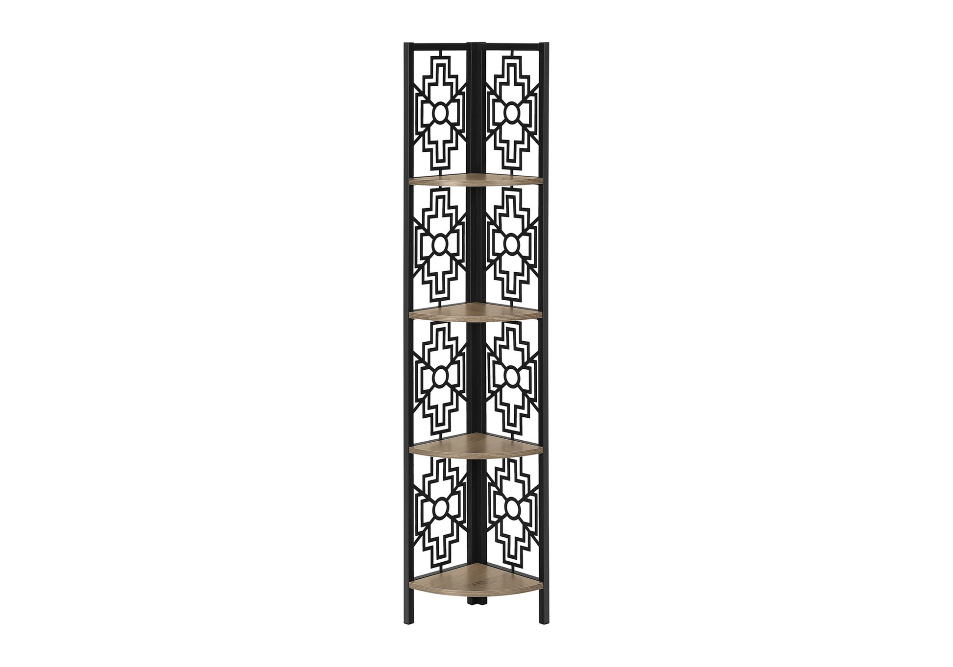 - This corner shelf elevates the look of your home with a sleek black metal frame