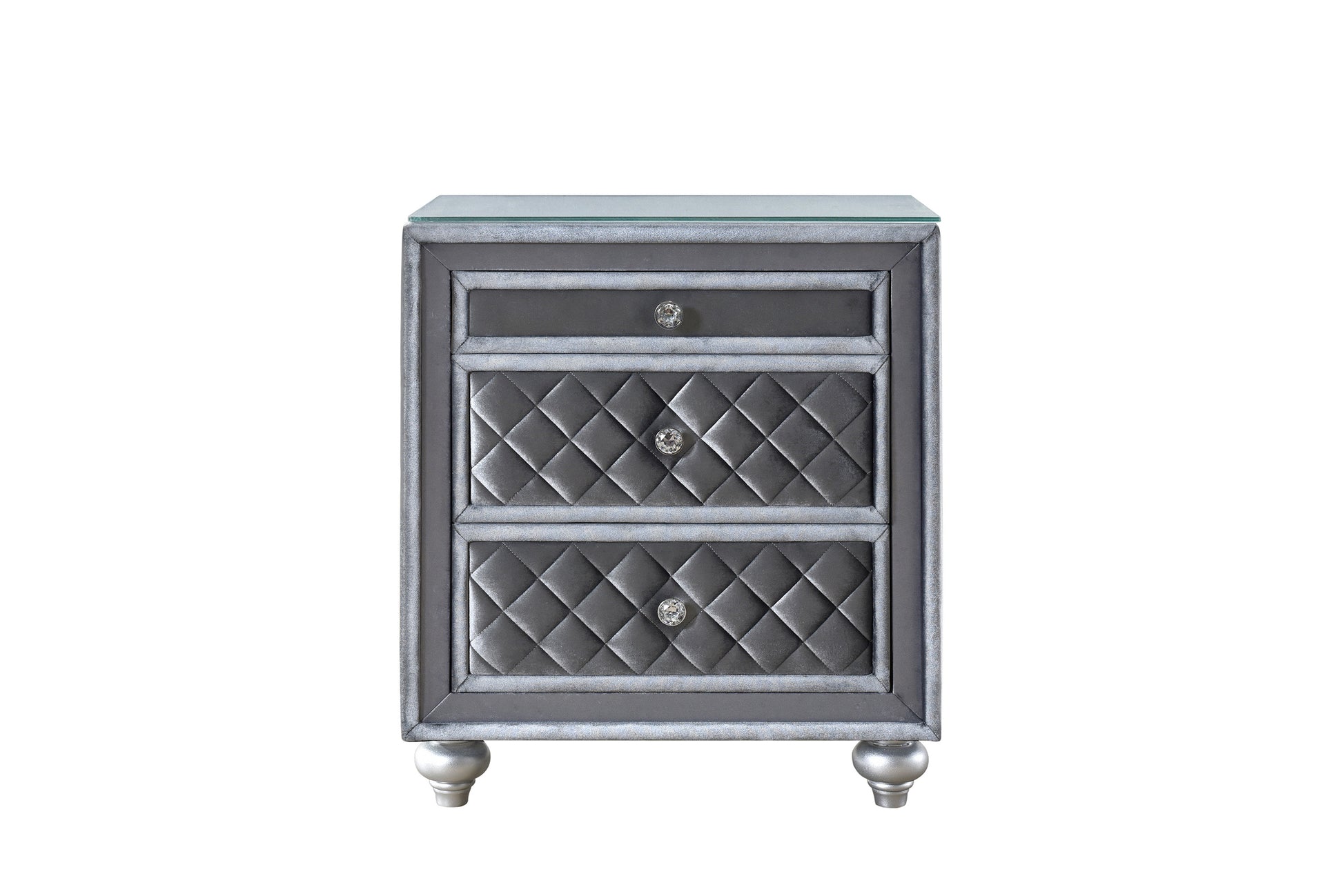 1pc Glam 3-Drawer Nightstand Velvet Tufted Drawer Front Jewelry Tray Faux Crystal Drawer Knobs