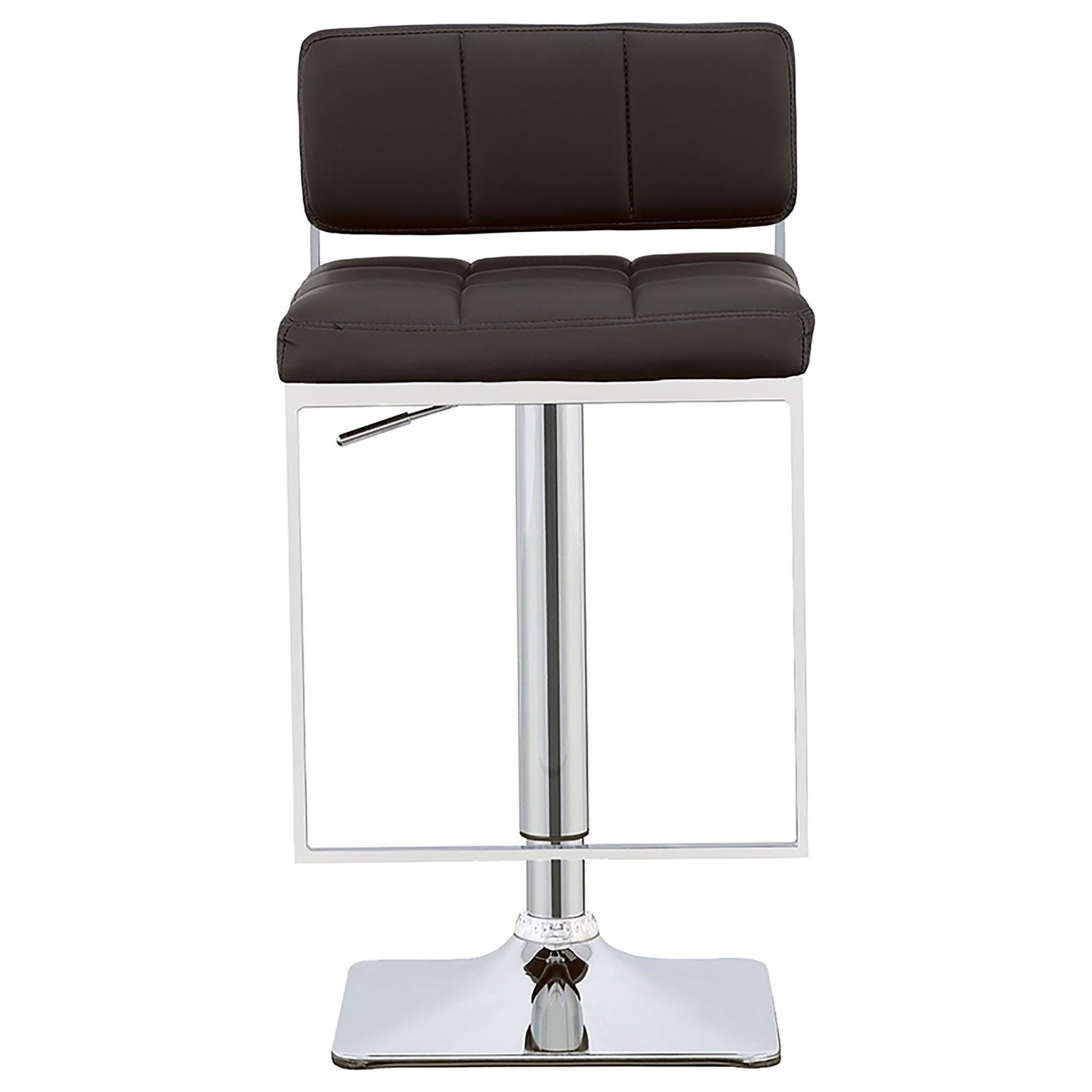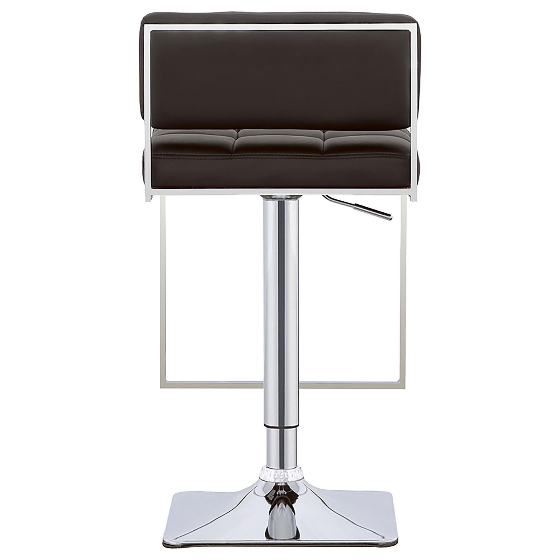 Immaculate tufted faux leather upholstery adorns the cushioned back and seat of this sleek chrome bar stool. A hydraulic mechanism used to adjust this stool's height will make guests feel at home in your modern dining room.