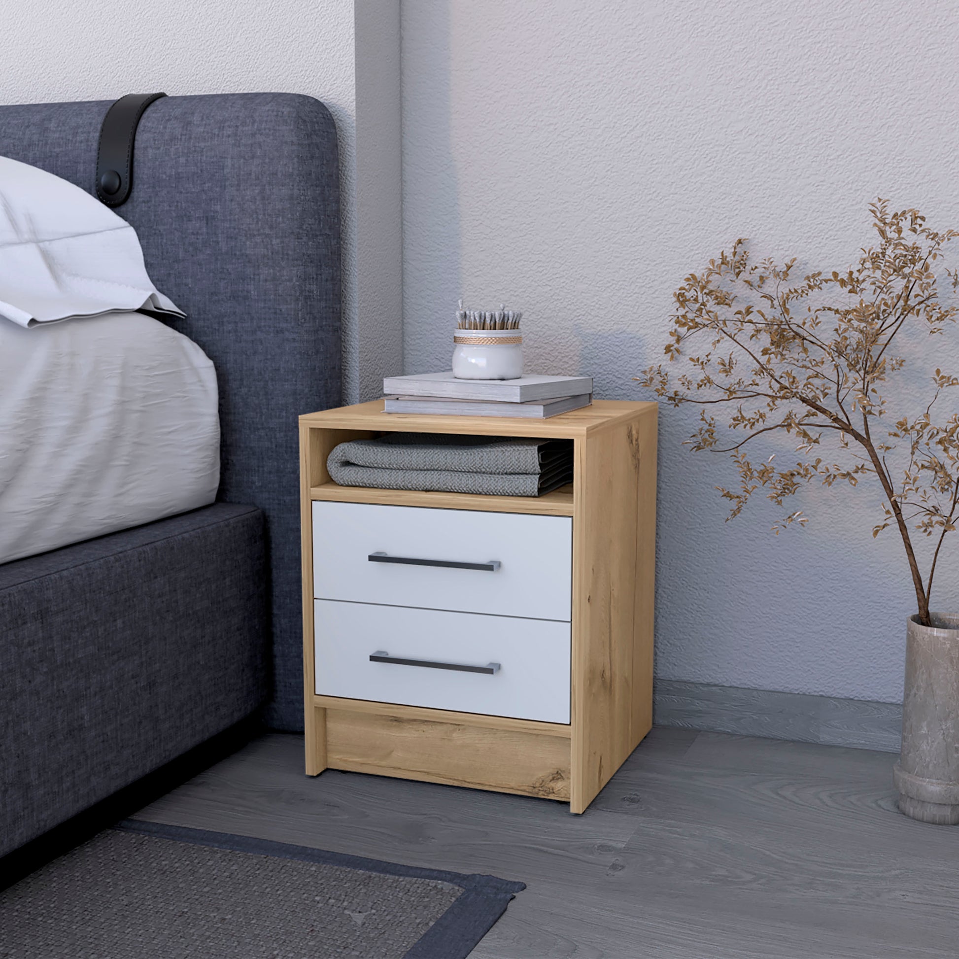 Philadelphia Nightstand, Two Drawers, Concealed Shelf