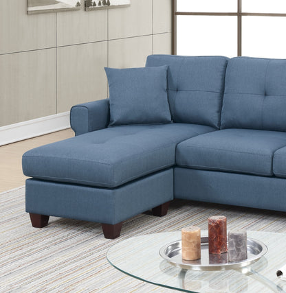Blue Color Glossy Polyfiber Tufted Cushion Couch Sectional Sofa Chaise Living Room Furniture Reversible Sectionals Chaise