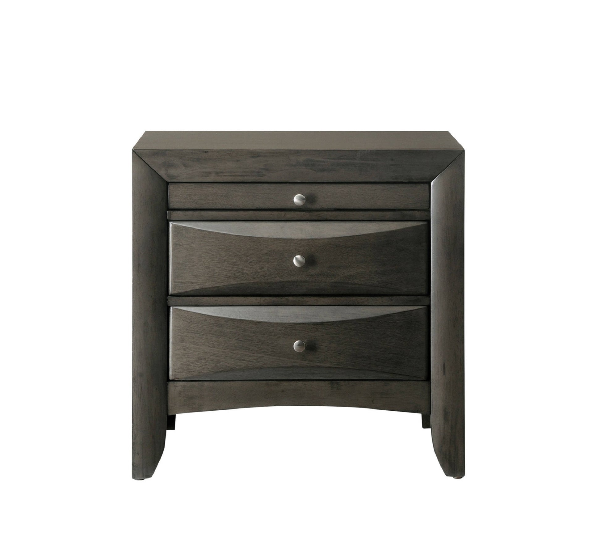 1Pc Contemporary 2 Drawer Nightstand End Table Jewelry Tray Gray Finish Solid Wood Wooden Bedroom Furniture
