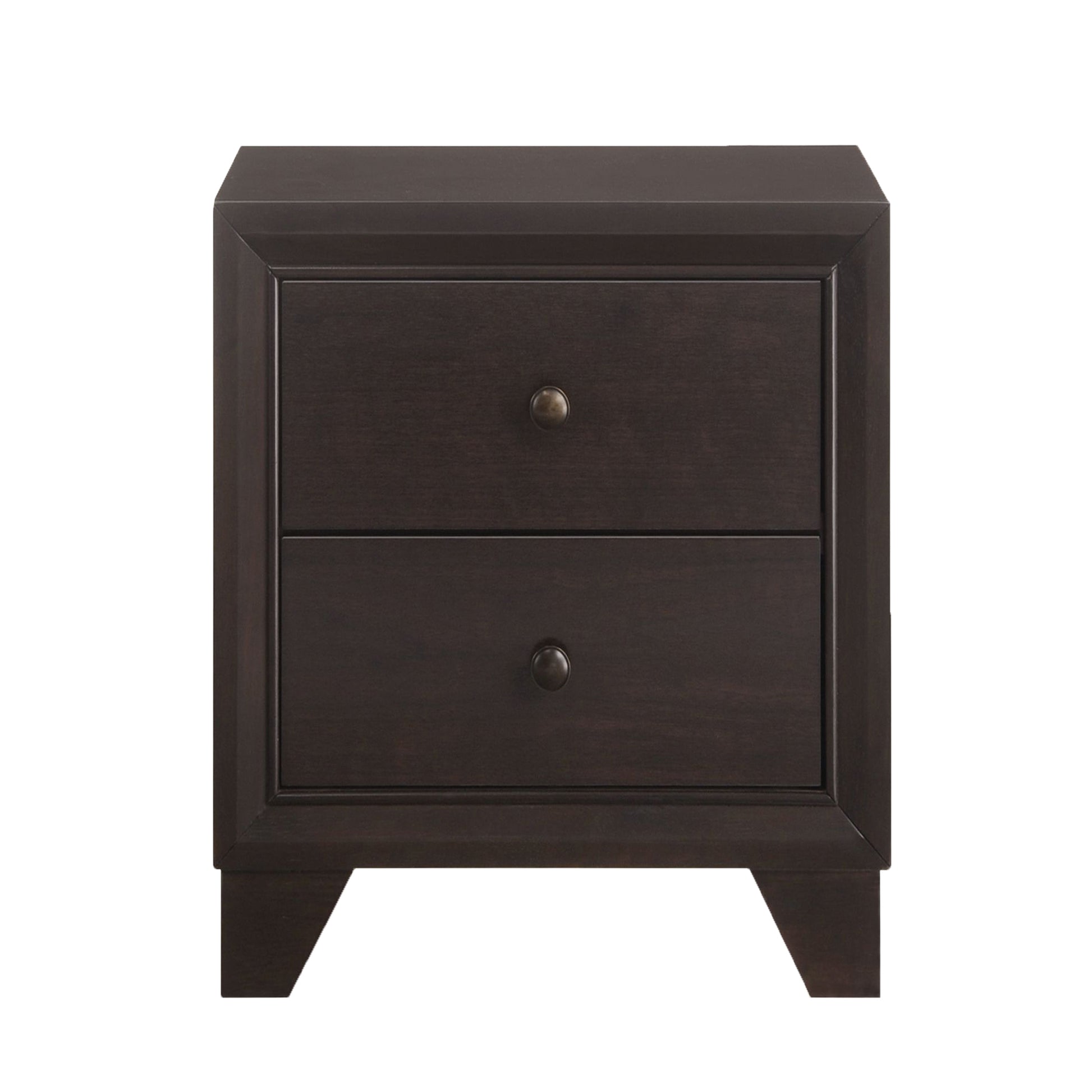 Whether used on its own or paired with other transitional furniture pieces, this nightstand combines functionality and style with two drawers for convenient storage, keeping your space neat and essentials accessible. The espresso finish adds visual appeal and warmth, while sturdy wooden bracket legs ensure stability and support.