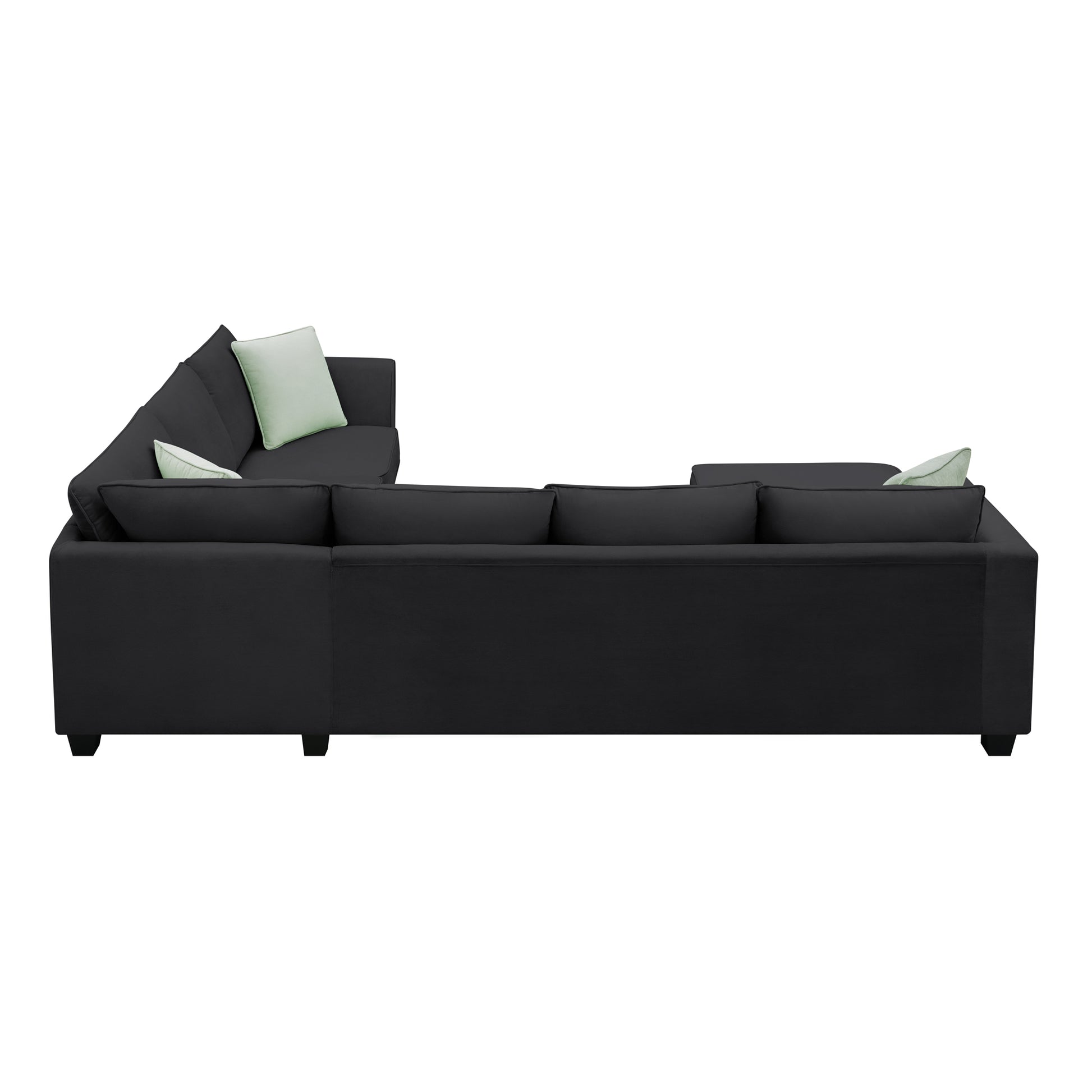 112x87" Sectional Sofa Couches Living Room Sets, 7 Seats Modular Sectional Sofa with Ottoman, L Shape Fabric Sofa Corner Couch Set with 3 Pillows, Black(New of GS008210AAB)