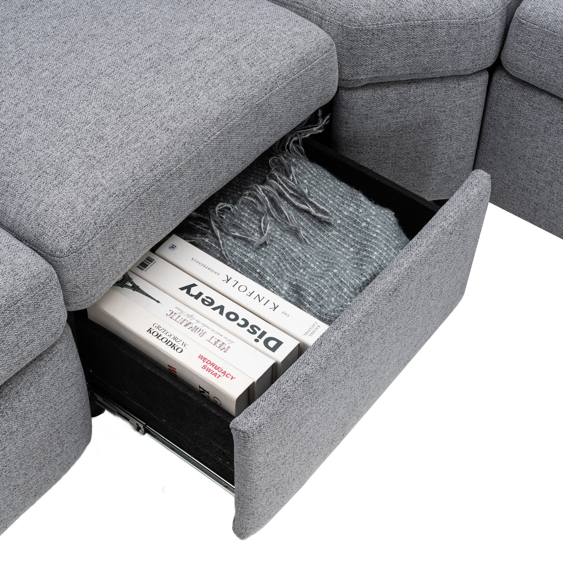 - Two Convenient Storage Drawers - There are two drawers located beneath the seats which can be used to neatly store away items like remote controls, magazines, books, or even snacks. This feature helps keep your living area tidy and organized while ensuring that everything you need is always within easy reach.