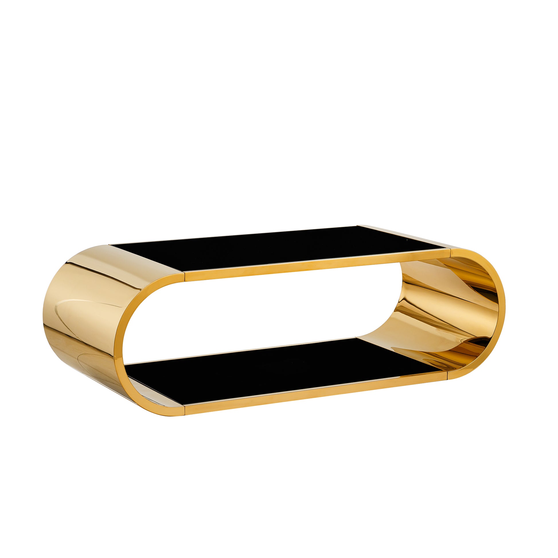 - Unique Design: Oval shape design, black glass top with gold stainless steel, adding a touch of beauty to your living room or office