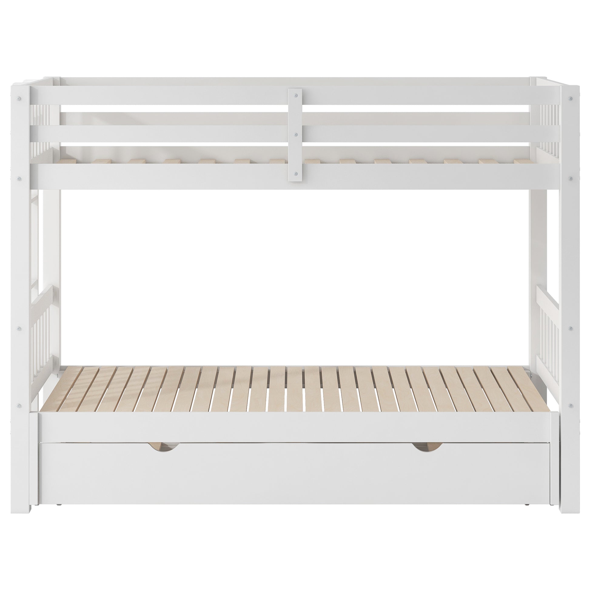 White Twin Over Pull-out Bunk Bed with Trundle, Pine Wood and MDF, 78.9''L x 116''W x 59.6''H