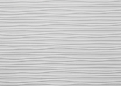 This collection plays with its geometric design literary frames the room. The raised case pieces are finished in white finish. The panel bed features a low profile footboard with slightly tapered feet, and a softly curved headboard with slat cutouts. Sleek and chick, this group will be a perfect choice for any bedroom in your home.