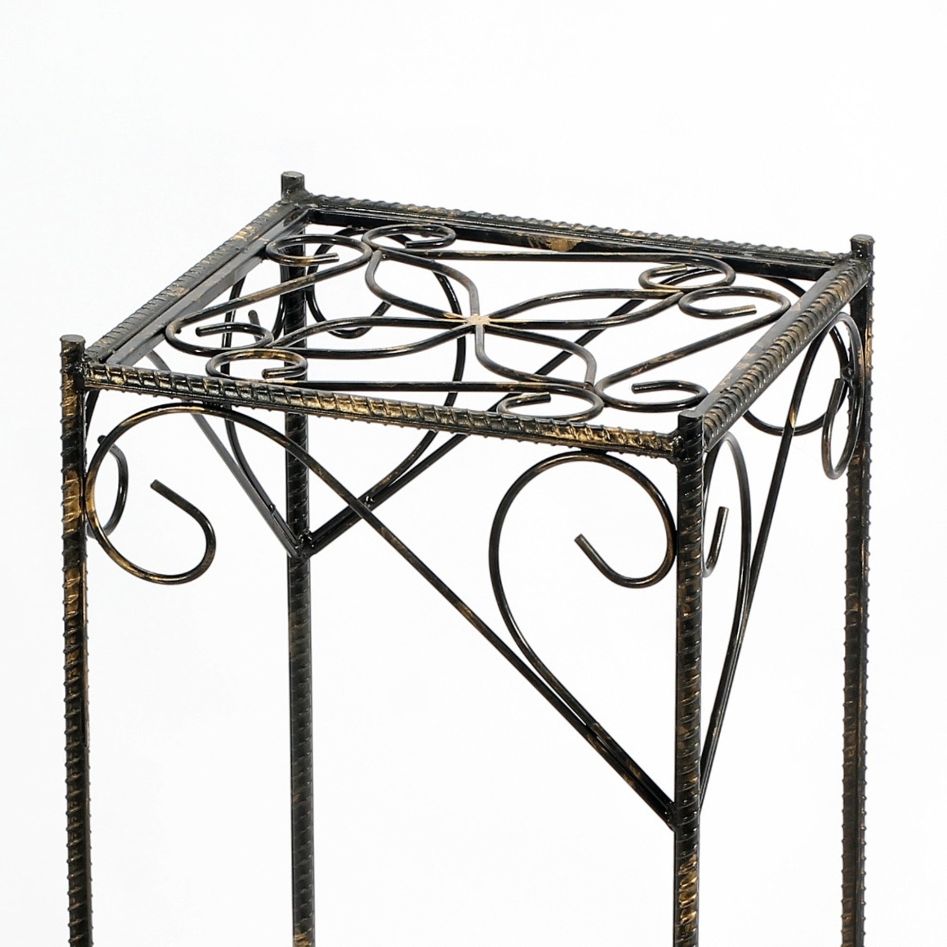 26.18" Large Celtic Clover Square Black / Gold Cast Metal Plant Stand