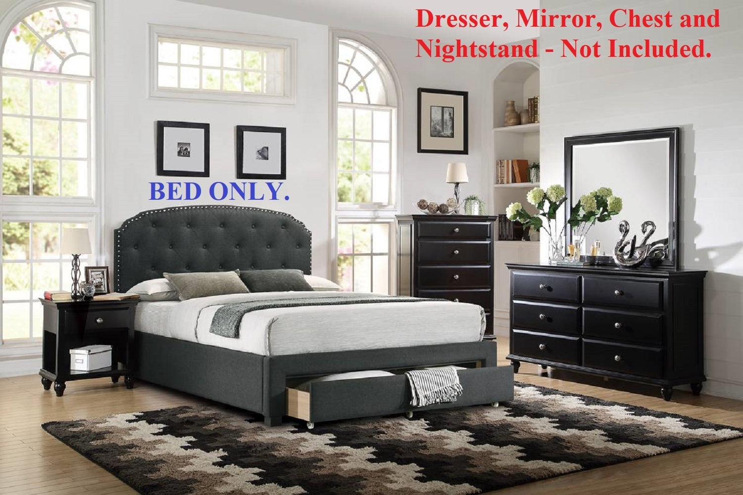 Charcoal Burlap Fabric 1pc Twin Size Bed w Drawer Button Tufted Headboard Storage Bedframe Bedroom Furniture