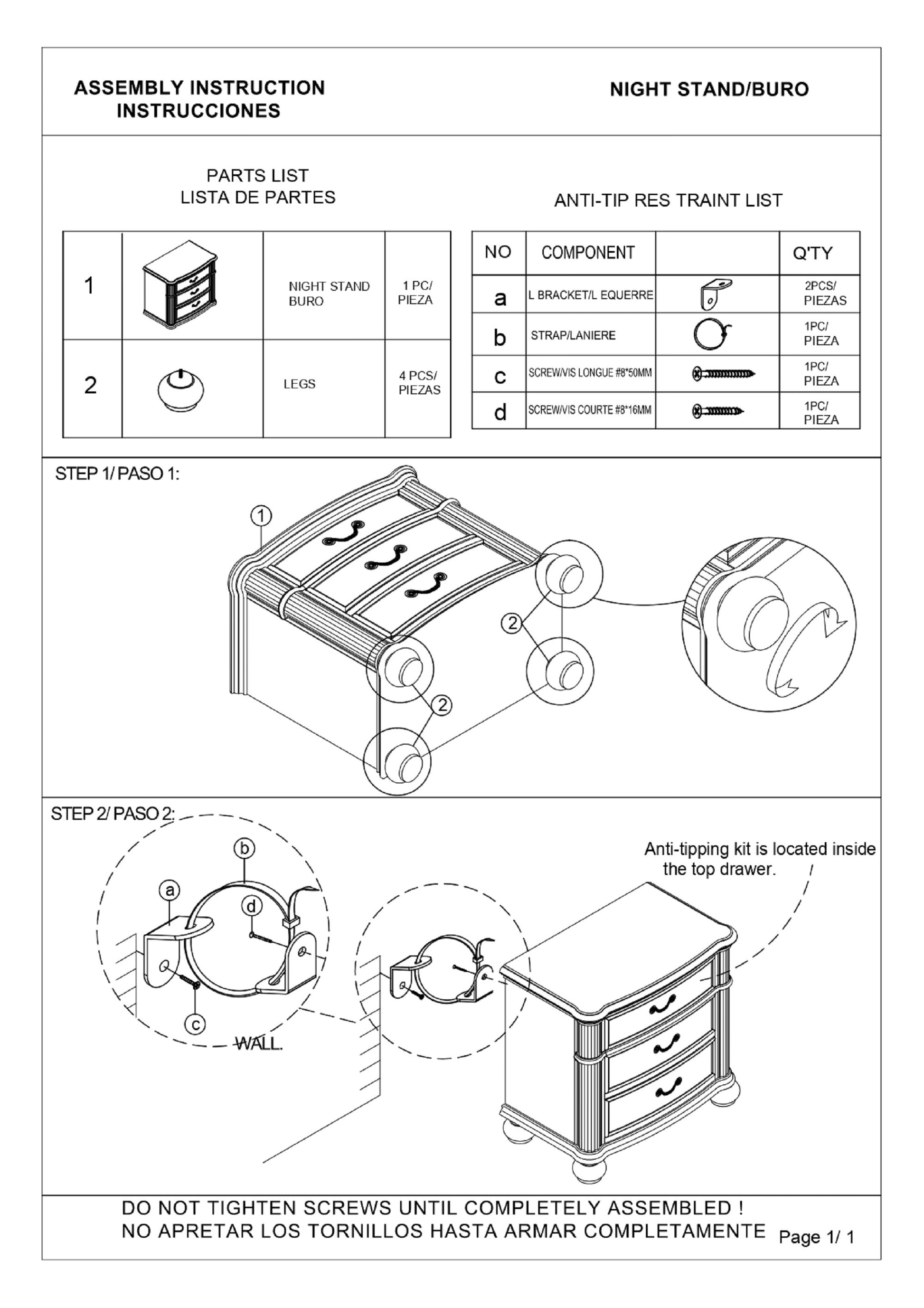 Nightstand : 26.8" X 16.5" X 25.3"H
