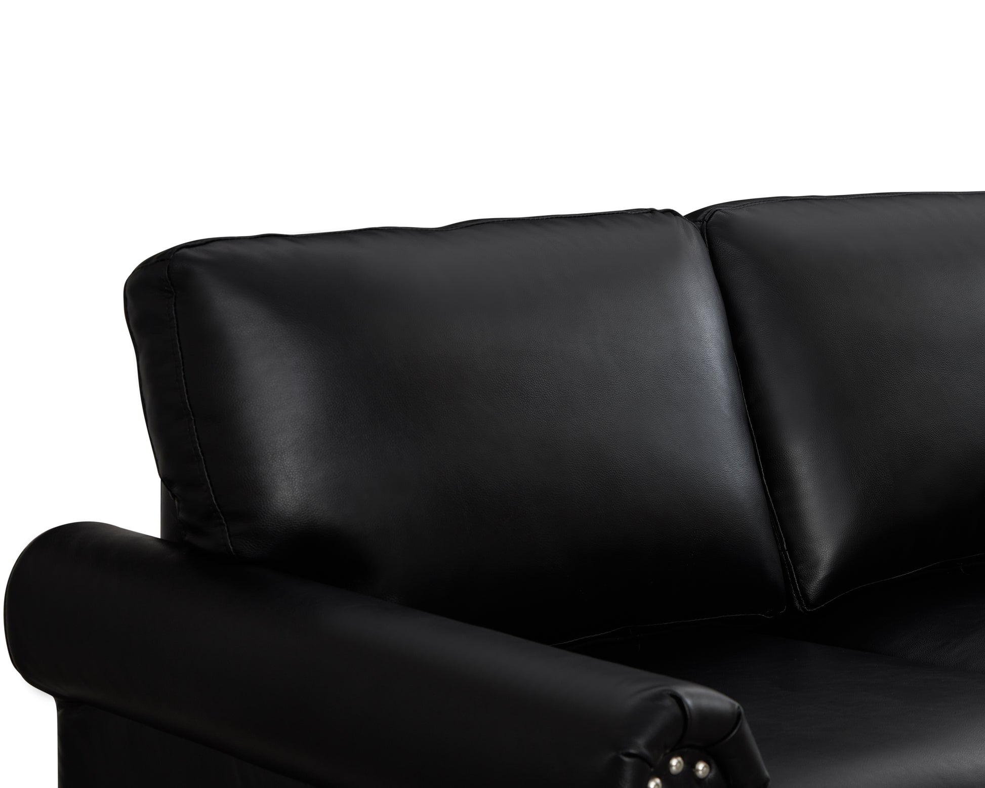 Classic Living Room Nails Sofa Black Faux Leather