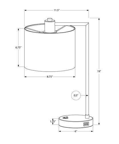 - This task lamp includes a convenient usb port to charge devices, a built-in on/off rocker switch at the base, and attached with a 6ft black cord that lights up a single bulb (not included) for a maximum output of 60W/120V.