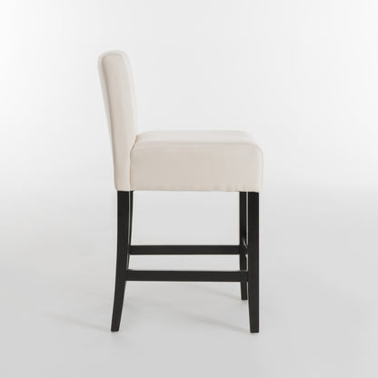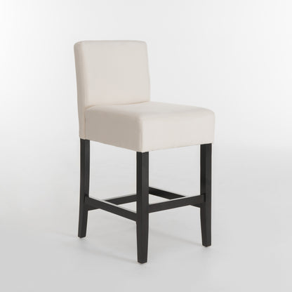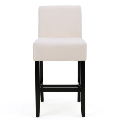 - These counter stools feature simple, elegant lines that complement any decor. Place them in your kitchen or anywhere you please, they are both classy and sharp, giving you the best of both worlds. Featuring a soft fabric or smooth bonded leather seat and sturdy rubber-wood legs, these stools are a great addition to any home.