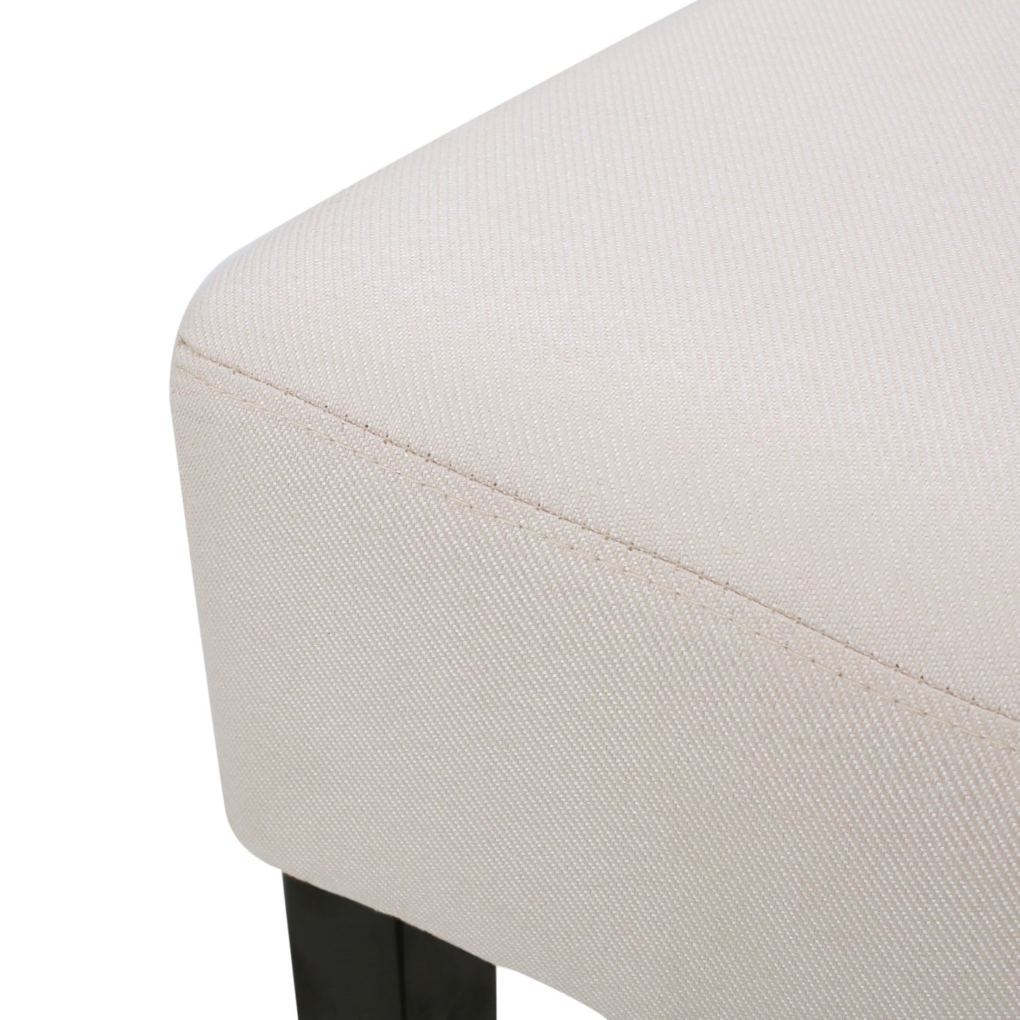 - Includes: two (2) counter stools. Material: fabric. Fabric composition: 100% polyester. Leg Material: Acacia Wood. Color: Beige. Leg Finish: dark brown