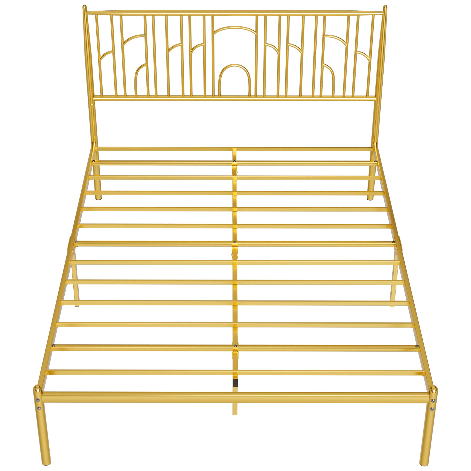 Metal Steel Platform Bed Frame with Iron-art Headboard (Queen Size) - Gold