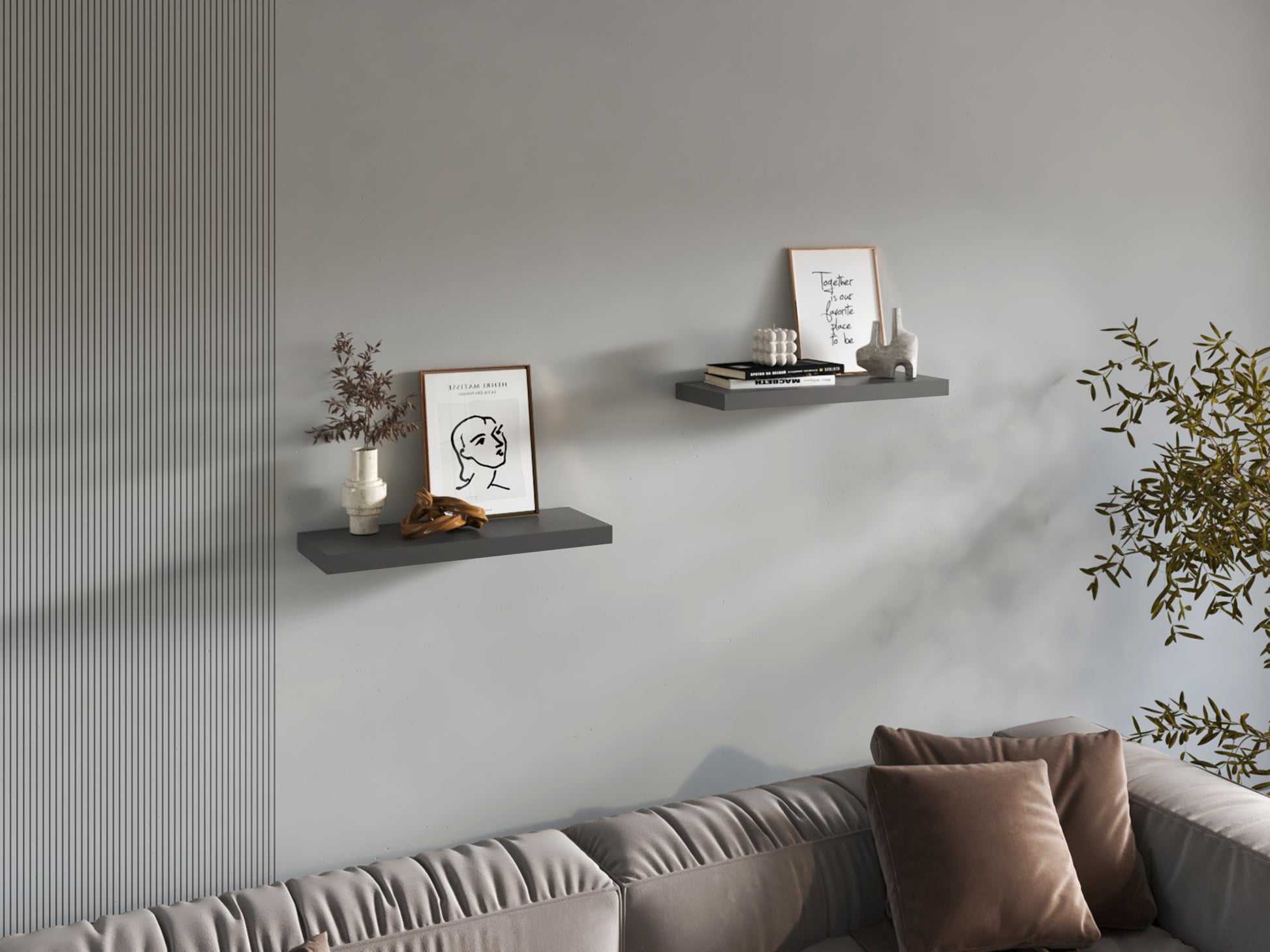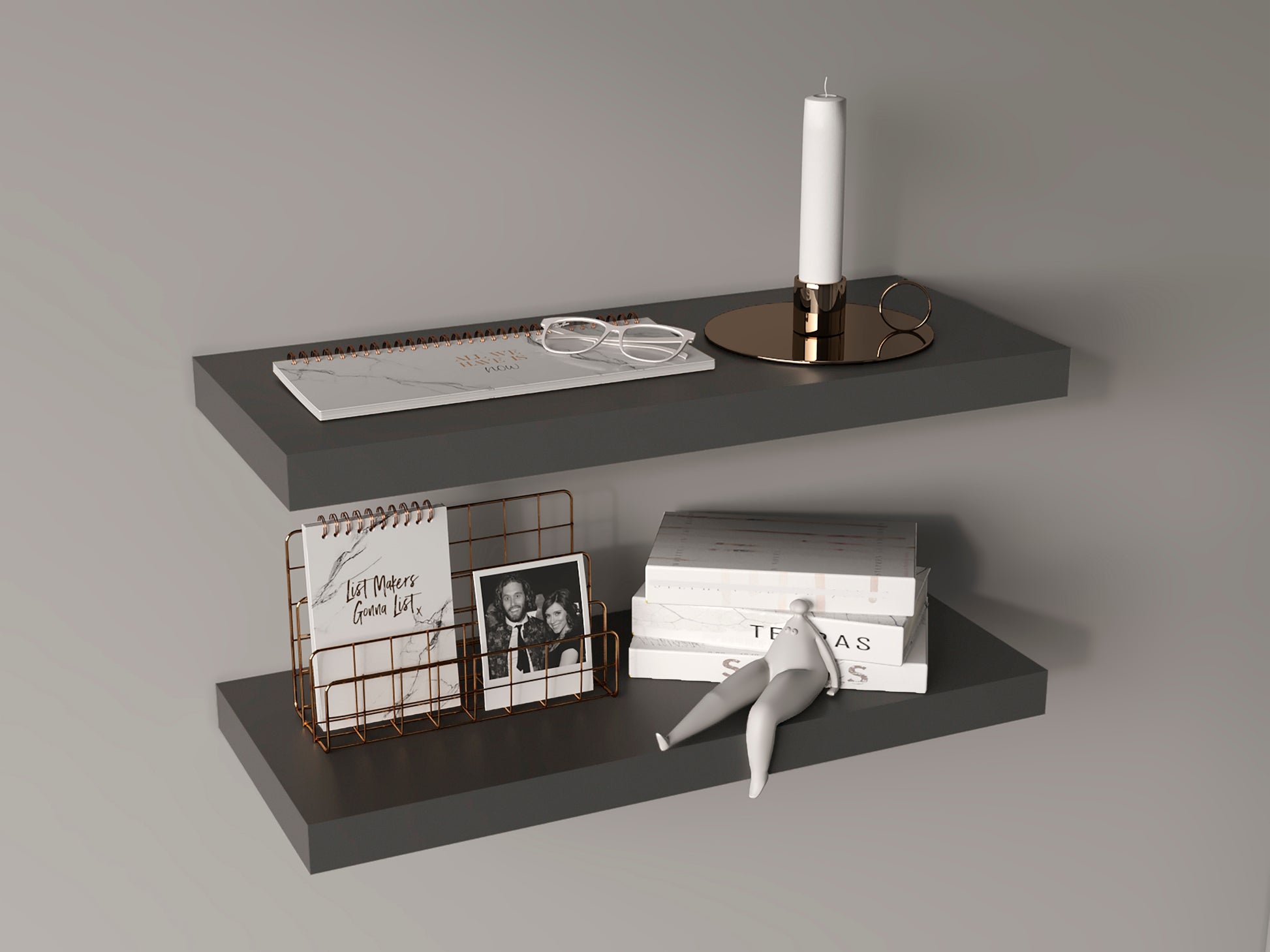 Floating Shelves 1.50" H, 2 Shelves, Matt Gray