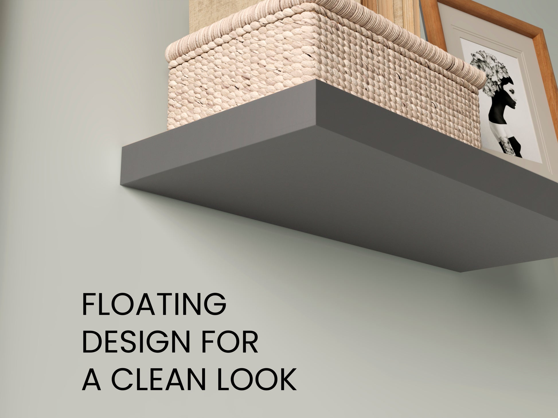 - Floating design creates a minimalist look while keeping your space clutter-free.