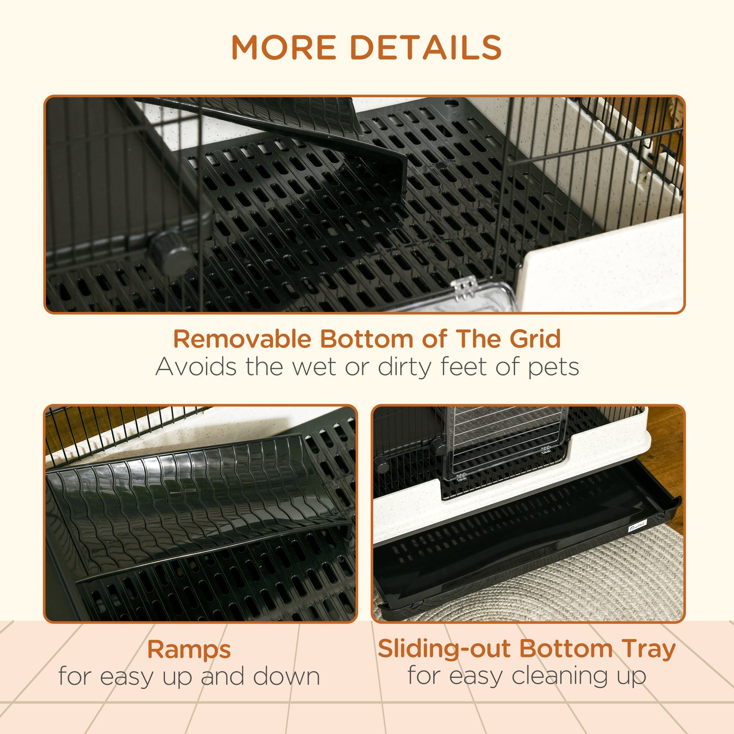 - Multiple Features: This chinchilla cage home for your small pet provides them with a platform and ramp for easily moving up and down. The bottom of the grid avoids the wet or dirty feet of small animals too.