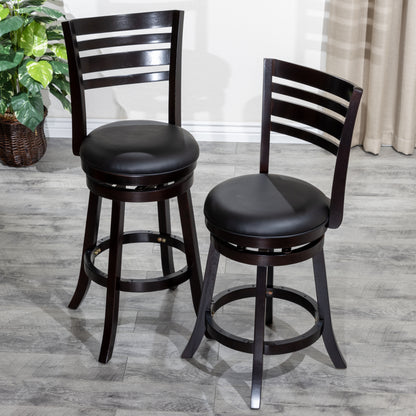 24" Counter Height Slat Back Swivel Stool, Espresso Finish, Black Leather Seat