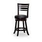 24" Counter Height 4-Slat Back Swivel Stool, Espresso, Black Leather